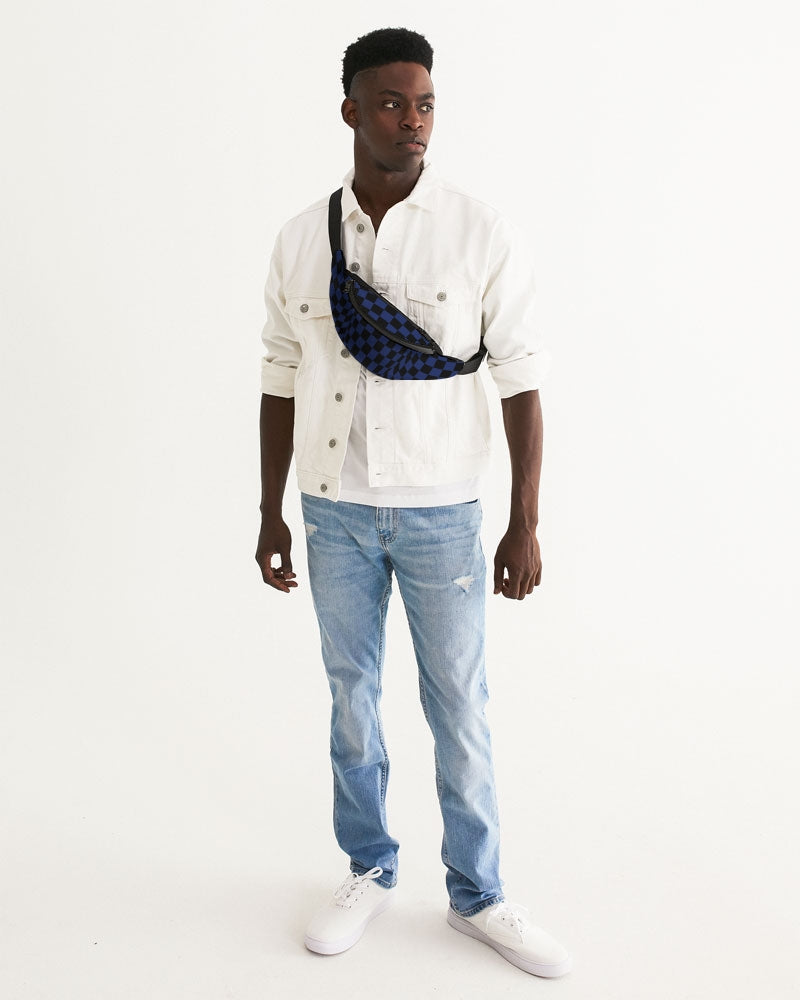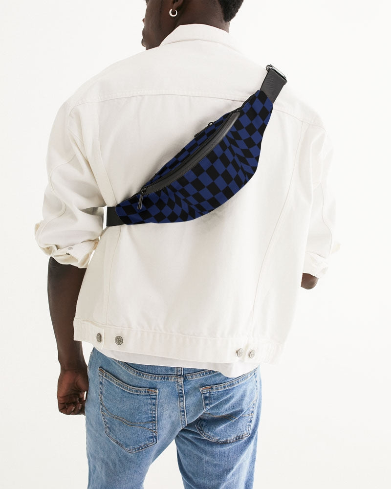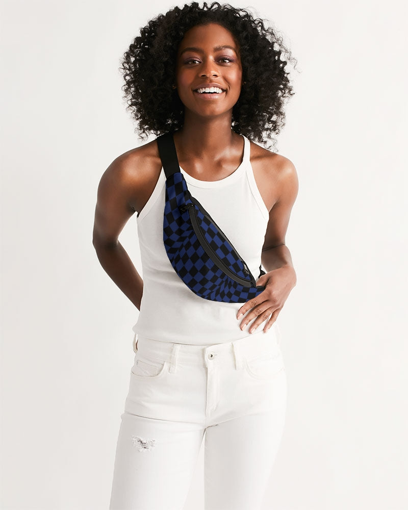 Designed to keep your essentials in order, our Black & Blue Checkerboard Crossbody Bag is perfect for everyday use. Wear it over the shoulder, or around the waist for easy access to your things. With two zip compartments, an adjustable belt and a buckle closure, this check crossbody bag is a contemporary unisex design.