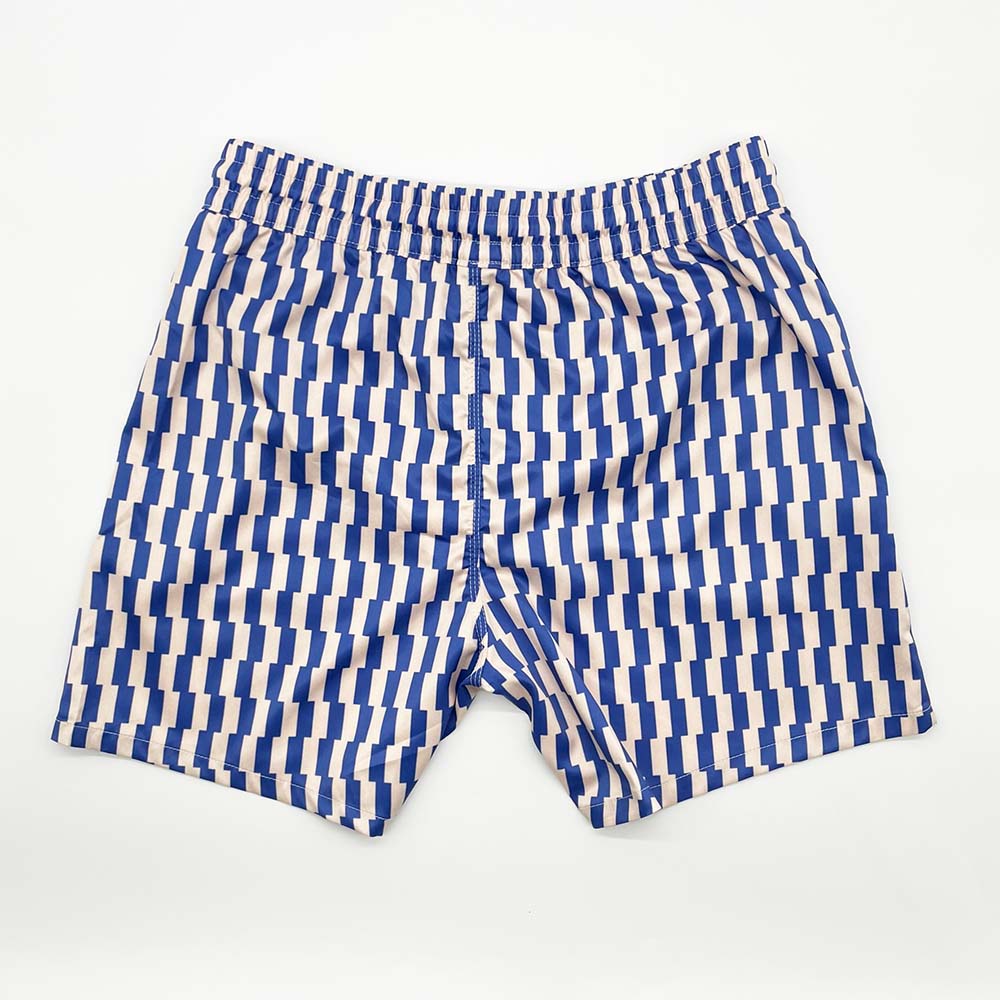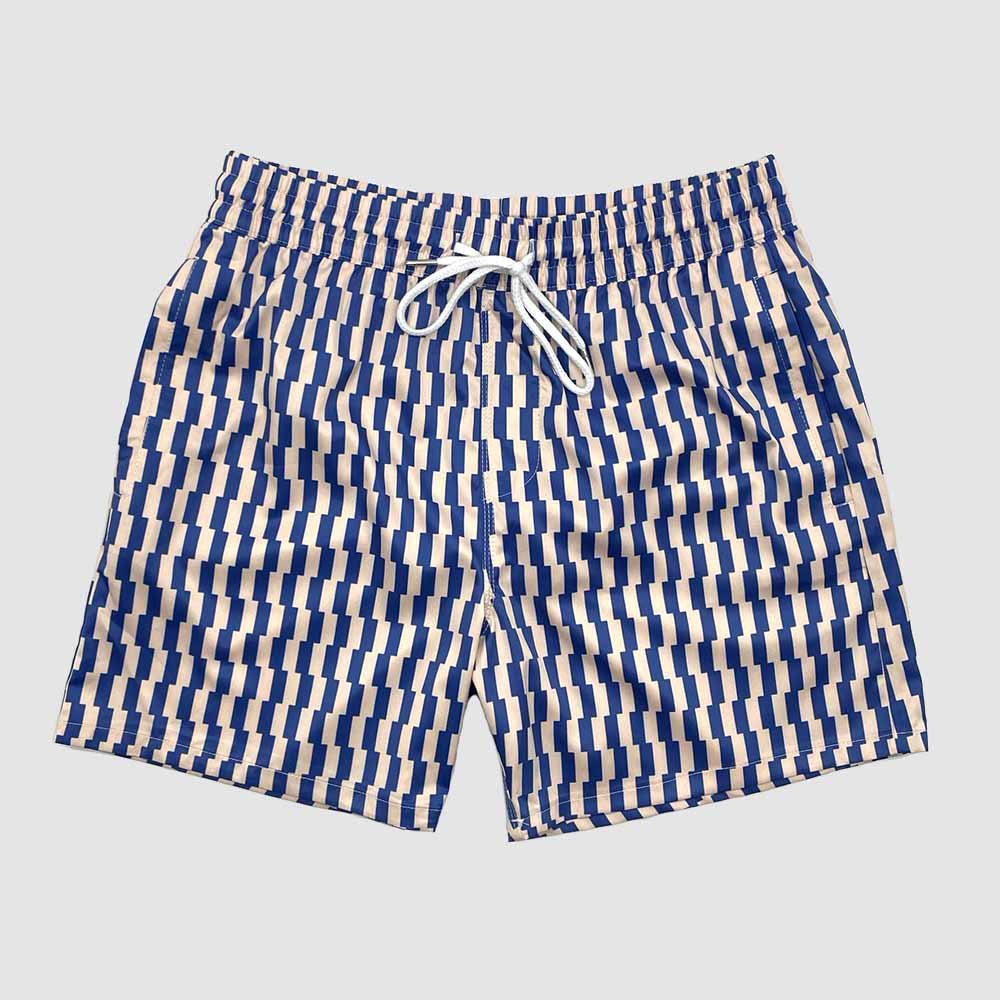 Our Blue Vanilla Harmony Swim Shorts are awesome. The blue stripe check pattern on a vanilla cream tone is on-trend and contemporary. They feature two side pockets, white interior mesh lining, and adjustable waistband with fabric drawcord. Manufactured from superior quality material with fine stitching.
