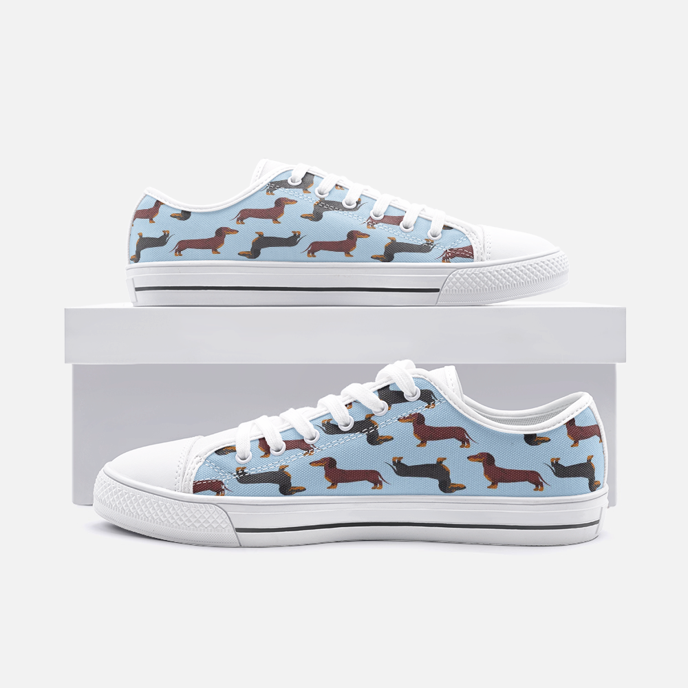 Step up your sneaker game in these cool Low Top Canvas sneakers with cute Dachshund pattern. With a rounded toe construction they feature soft textile lining, and lightweight construction for maximum comfort. The lace up closure ensures a snug fit with metal eyelet for a classic look. The high quality outsole provides traction and exceptional durability.