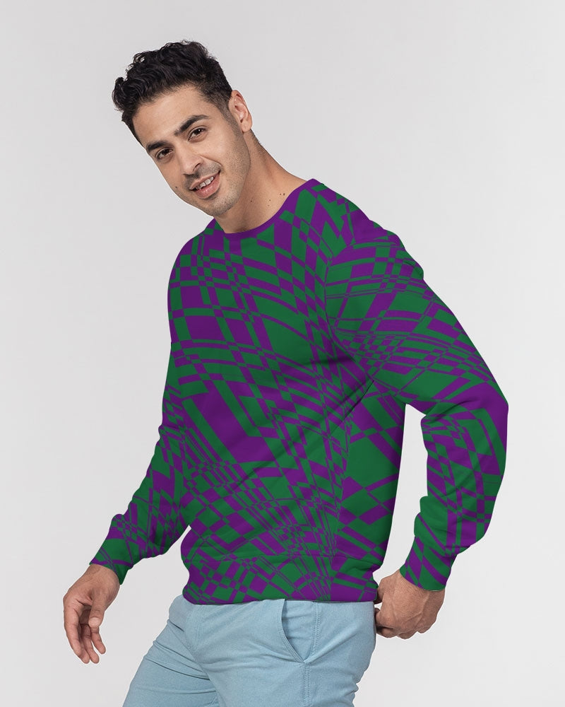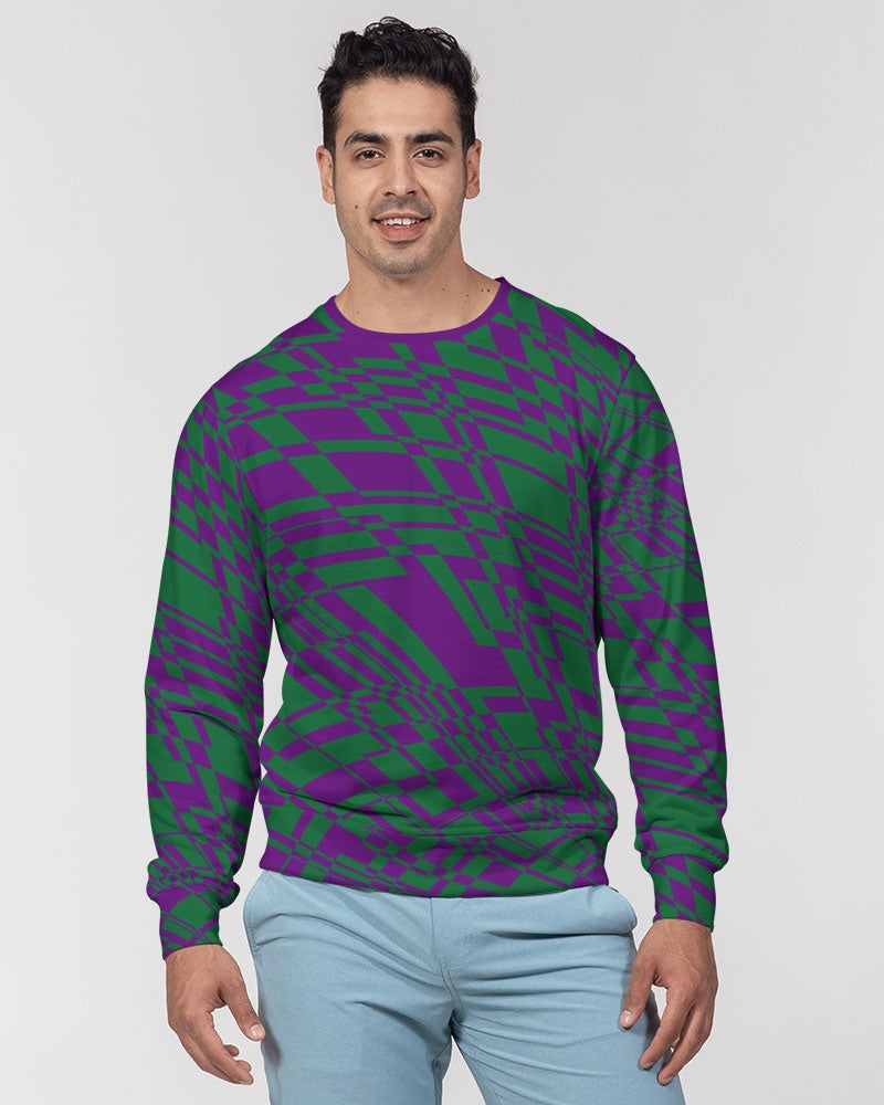 Our Leprechaun design features an all over abstract pattern in purple and green. This Classic French Terry Crewneck Pullover has a regular fit that is not too big, but not too tight so you can layer it or wear it alone. Finished with a smooth surface on the outside and loop knitting inside for the right amount of warmth and comfort. Adds some style and originality to your outfit. Can be paired with jeans, pants or shorts. Dressed up with a jacket, or down with activewear - the choice is yours.