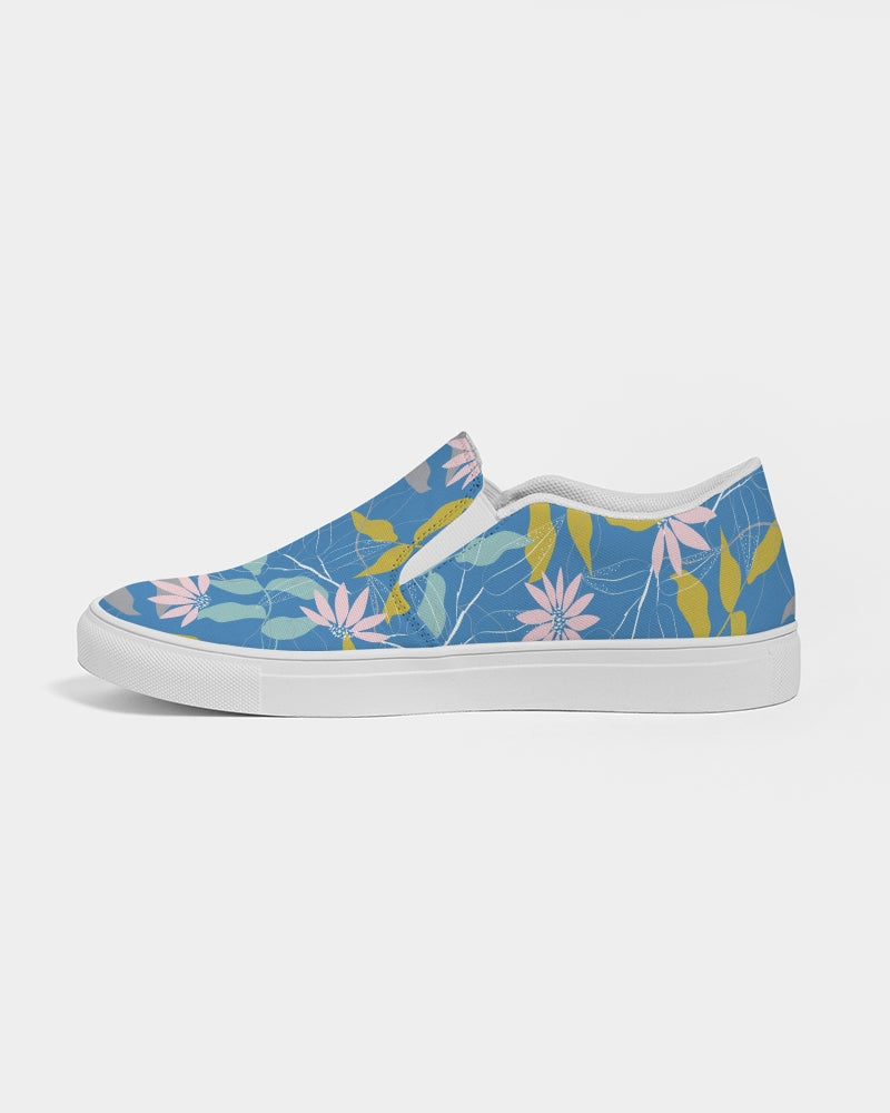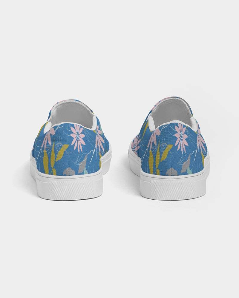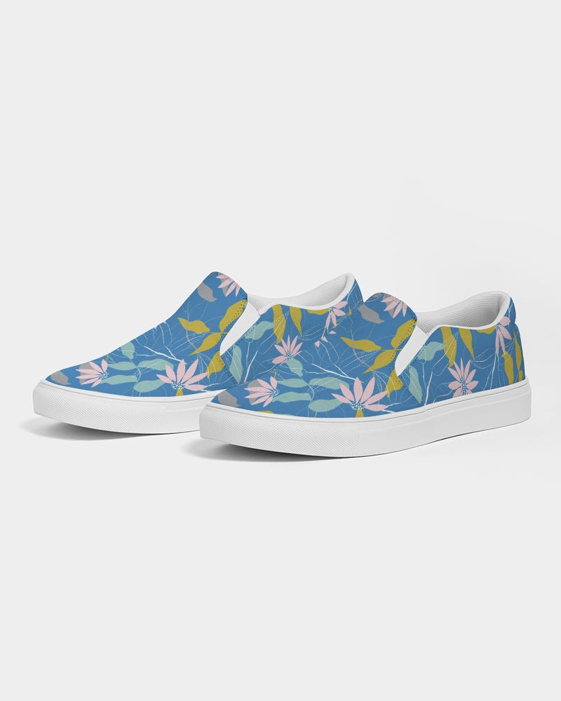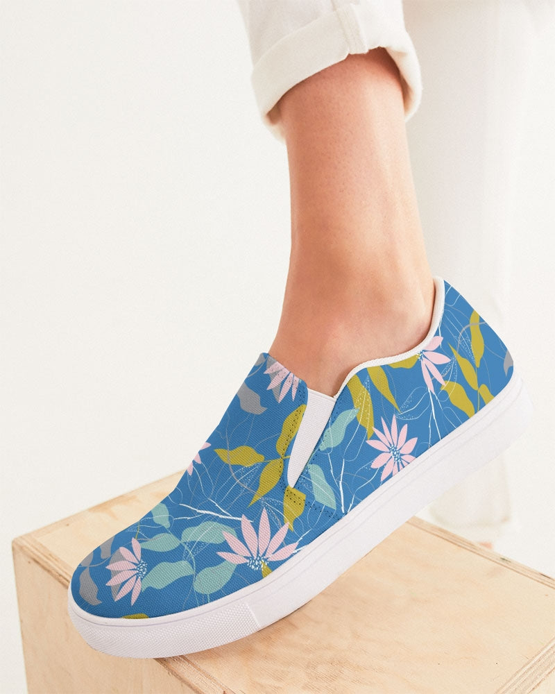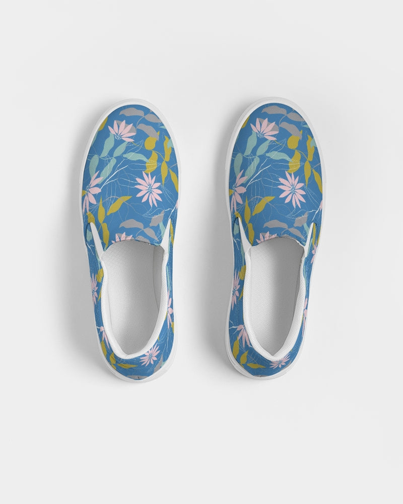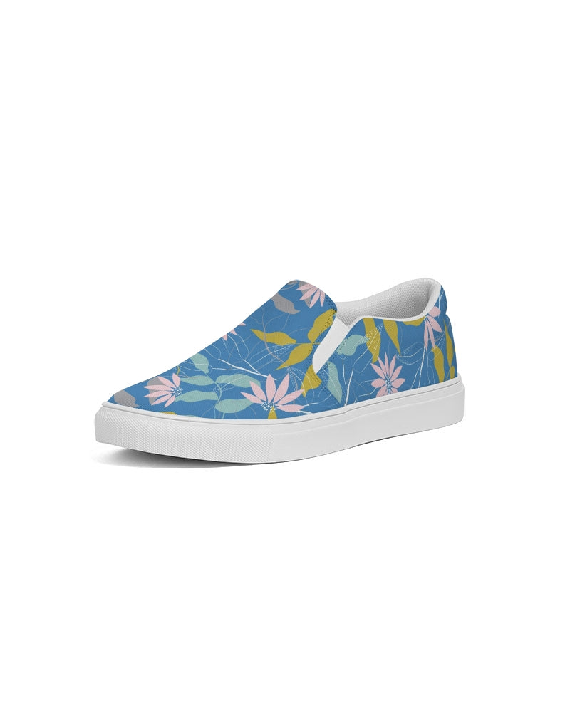 Our Parisian Blue Floral Women's Slip-On Canvas Shoes can be worn casual or dressed up. This bright floral design will enhance any minimalist outfit. Fully equipped with removable soft insoles and rubber outsoles. The slide in, slip on and off comfort will ensure they are your daily go-to. Our Women's Slip-On Canvas Shoes feature: