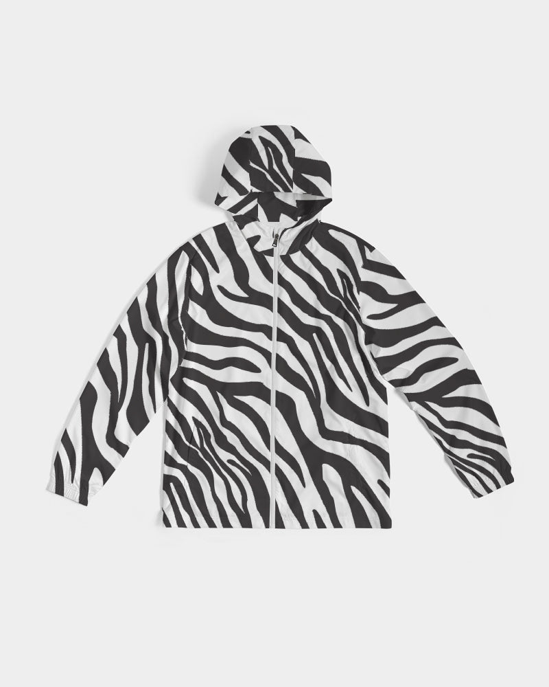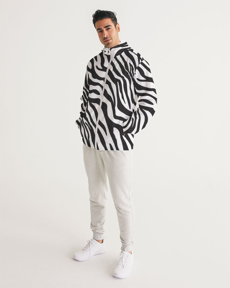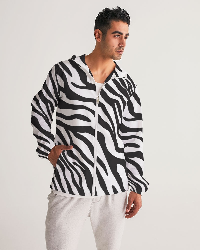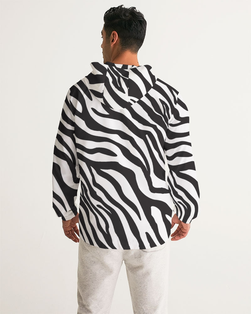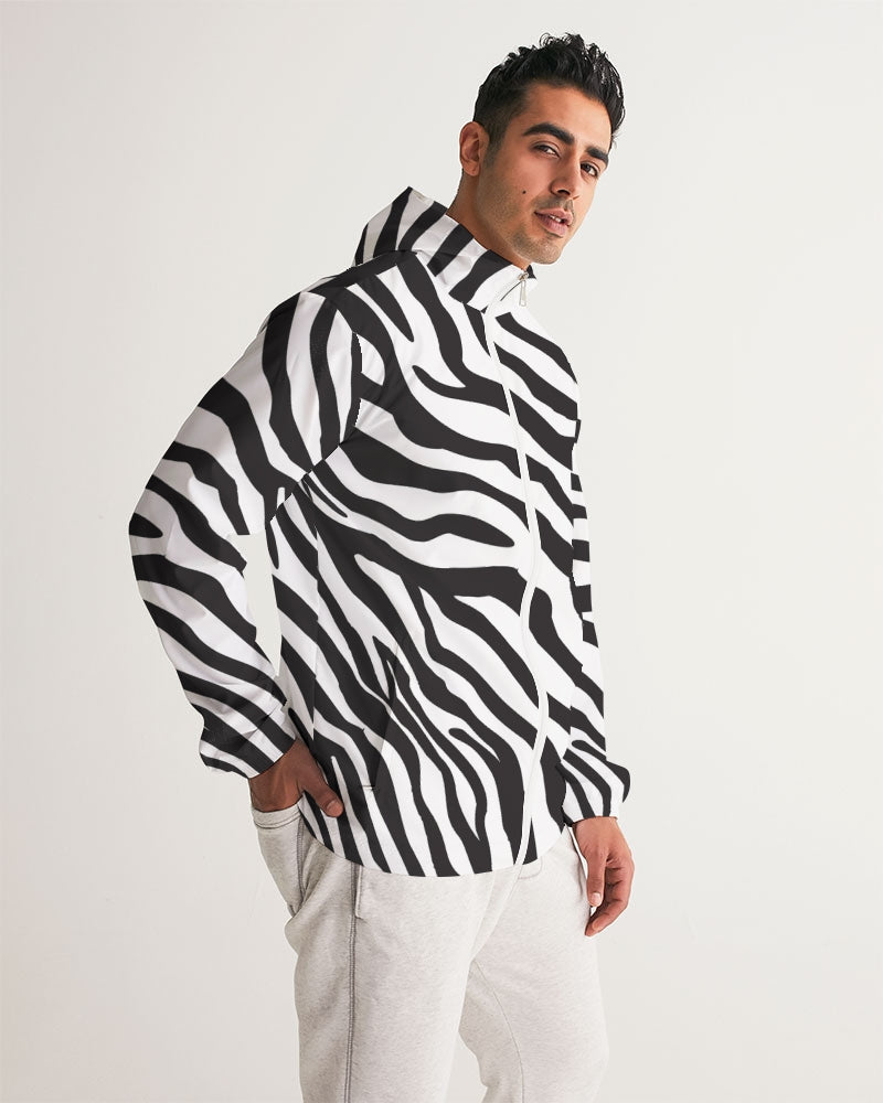 Offering full protection from the elements, our Zebra Print Men's Windbreaker features all over Zebra print in Black & White. High fashion and not for the faint hearted. It is handmade with lightweight, water-resistant fabric, and full mesh lining that can easily layer over a sweater or tee.