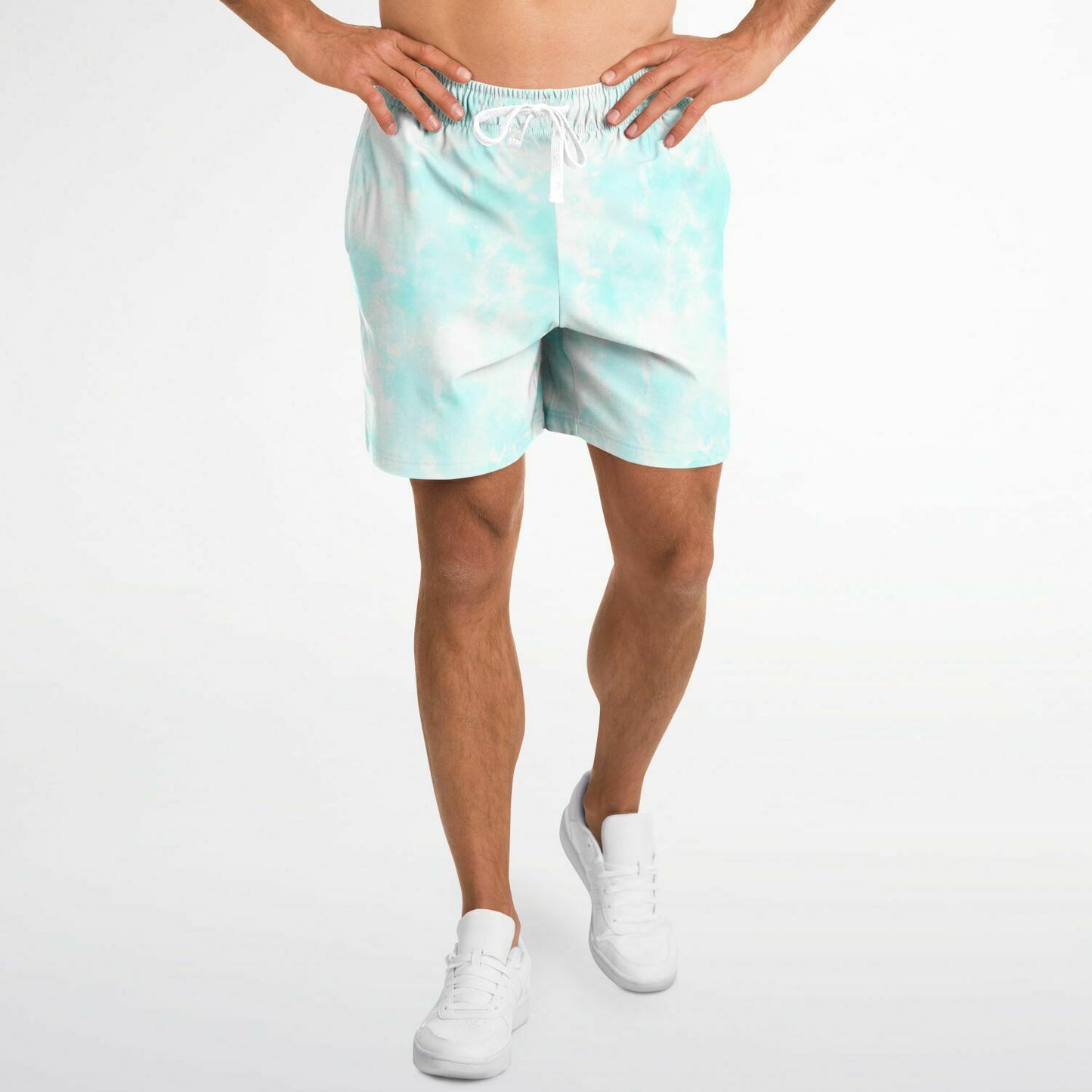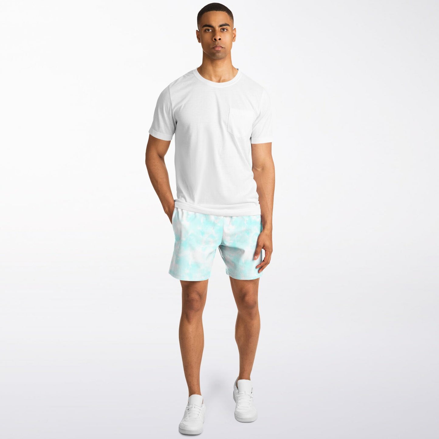 Our Blue Cloud Tie Dye Fleece Sweat Shorts provide a fashionable lift to your outfit. The all over tie dye print in light pastel blue is modern and contemporary.