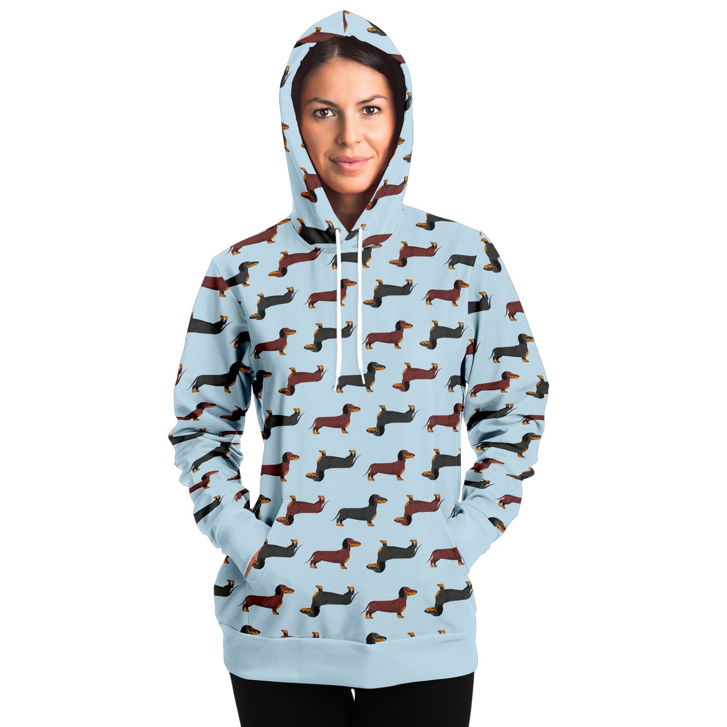 Our Dachshund Lovers unisex hoodie features a soft and durable fabric that has a cotton feel to it. The brushed fleece on the inside will make this your daily go to! This design features an all over super cute Dachshund Dog pattern. Pawfect gift for a Dachshund Lover or a gift to yourself!
