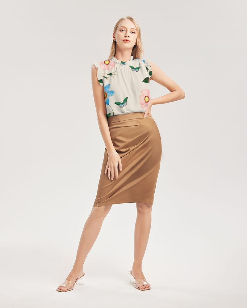 Elevate your wardrobe with our Ivory Garden Ruffle Sleeve Top. Featuring a stunning handpainted floral design from the 19th century, this blouse is both elegant and timeless. The delicate ruffle sleeves add a touch of femininity to any outfit. Perfect for the woman who values both style and art.