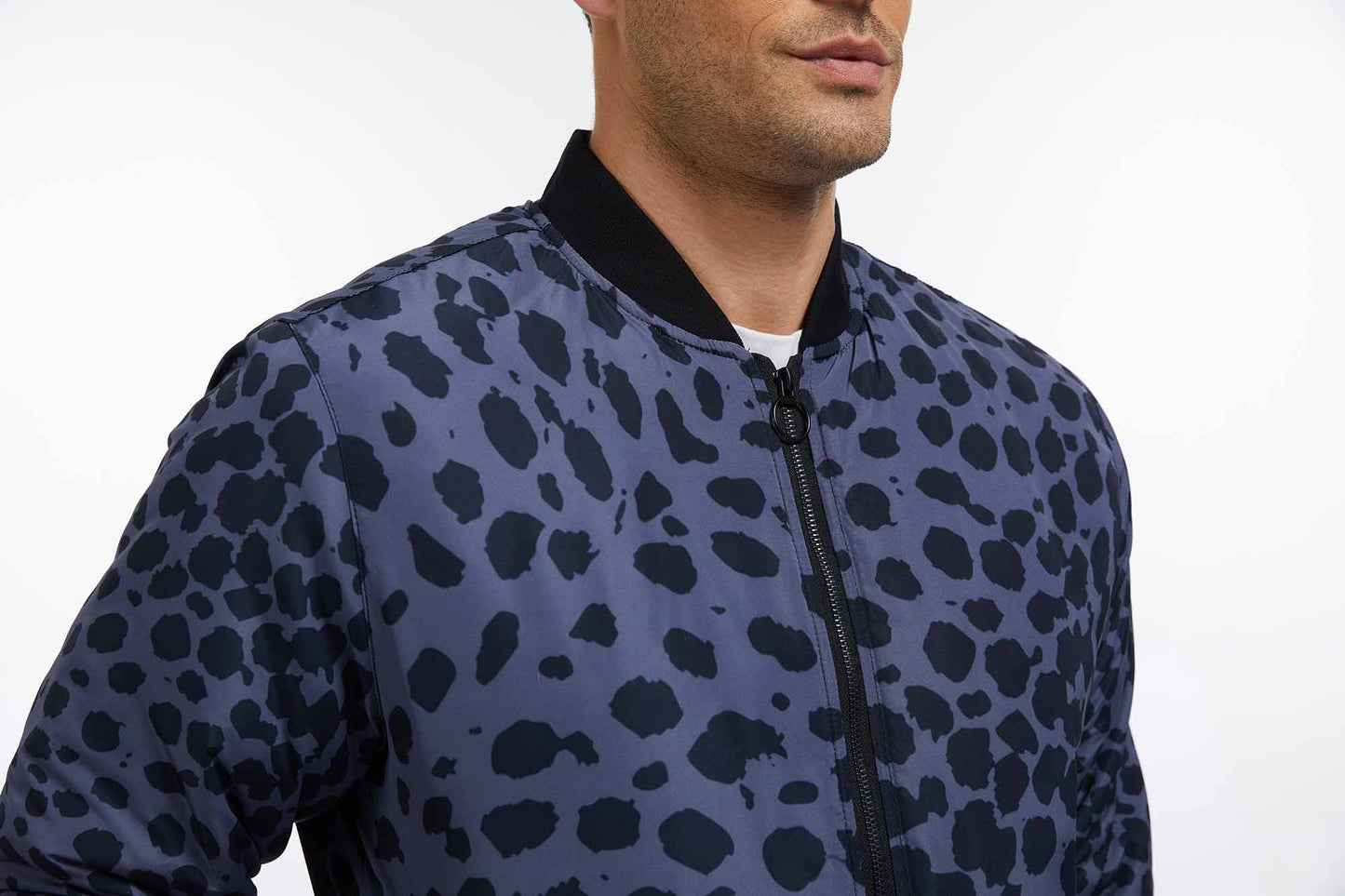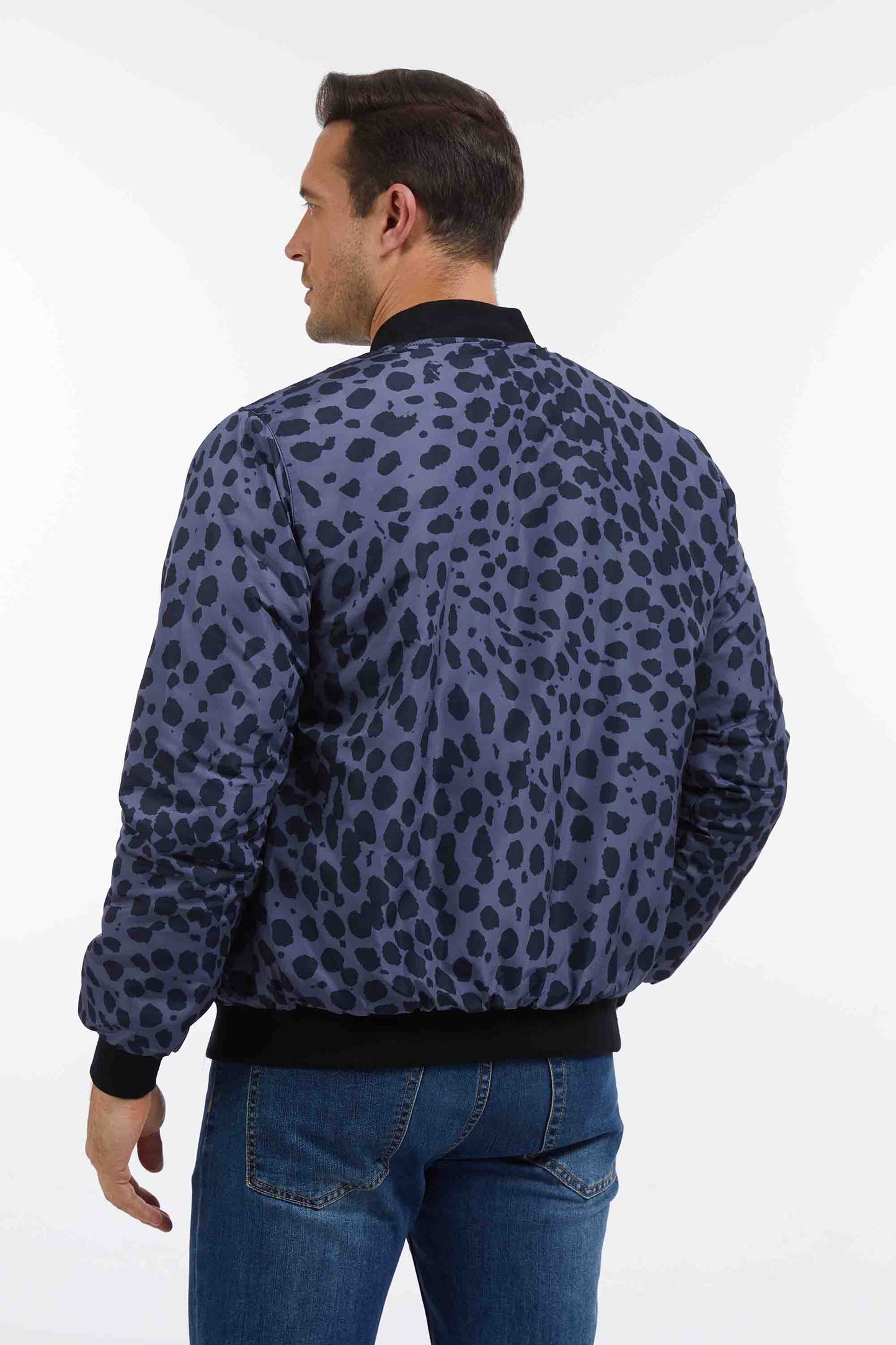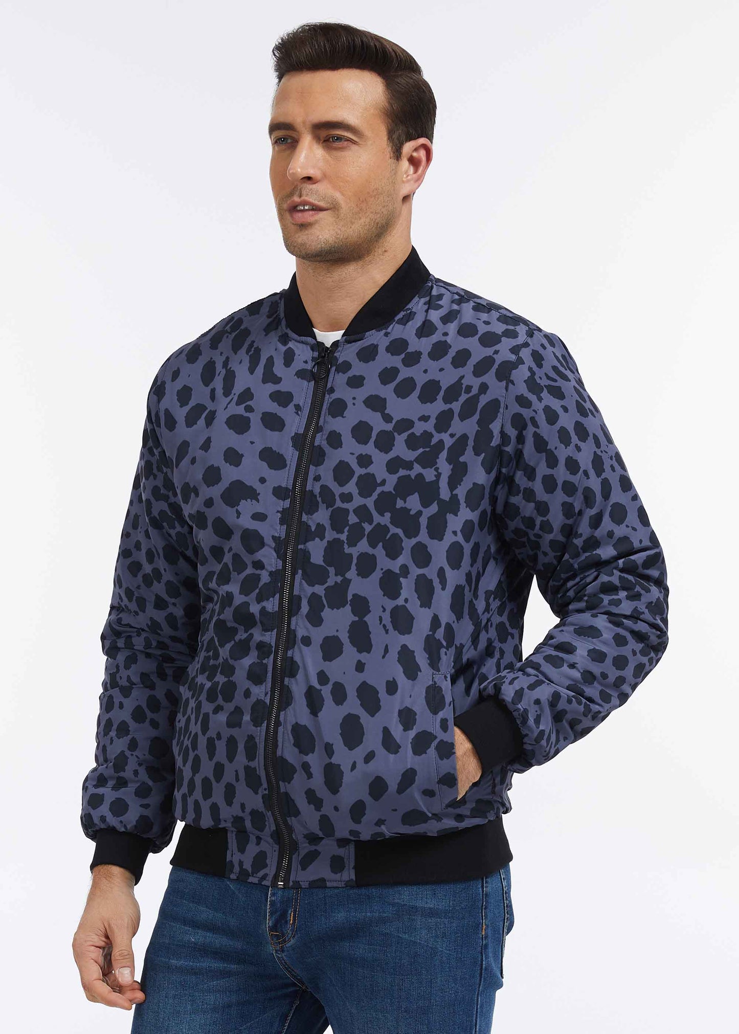 Our Cheetah Print Quilted Bomber Jacket is a stylish addition to your wardrobe. It features a classic cheetah print in charcoal and black.