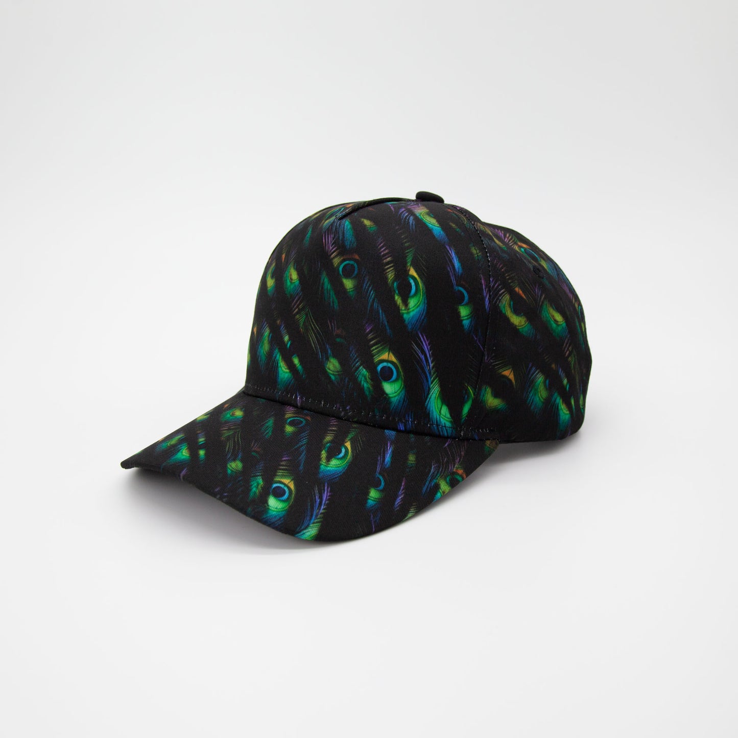 Turn heads with our Scorched Peacock Print Snapback Cap, a bold fusion of color, pattern, and attitude. Featuring rich peacock feathers and scorched tiger markings, this cap brings instant flair to any streetwear look. The structured snapback fit and curved brim keep it effortlessly cool and comfortable all day long.