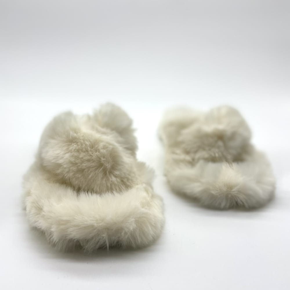 These crossover fluffy slippers in stunning cream are perfect for the cooler weather. The fluffy texture is warm and wear resistant, whilst also being a fashion statement. These funky slippers feature an open toe with crossover strap. Super comfy you'll be wearing them all day.