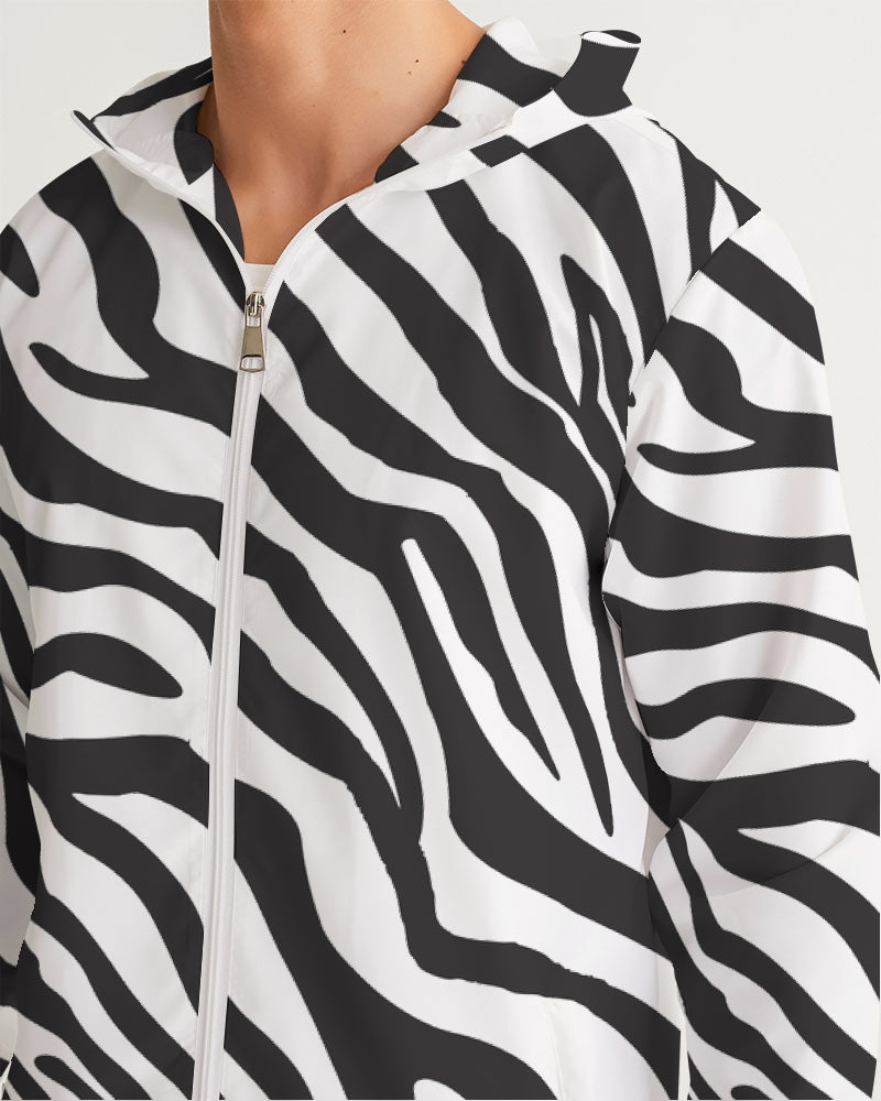 Offering full protection from the elements, our Zebra Print Men's Windbreaker features all over Zebra print in Black & White. High fashion and not for the faint hearted. It is handmade with lightweight, water-resistant fabric, and full mesh lining that can easily layer over a sweater or tee.