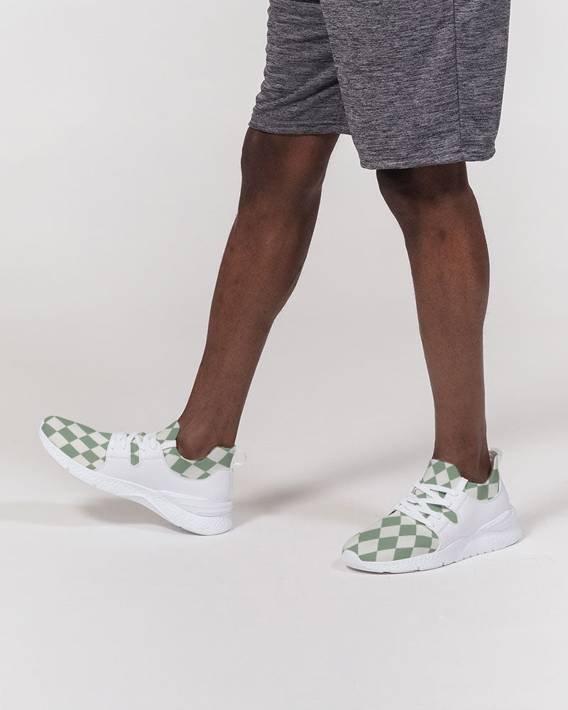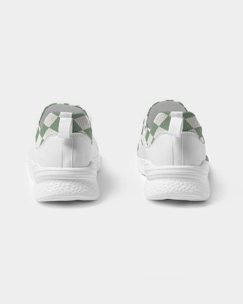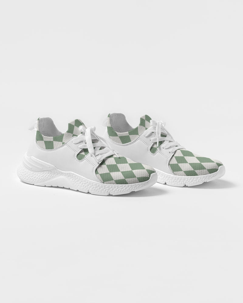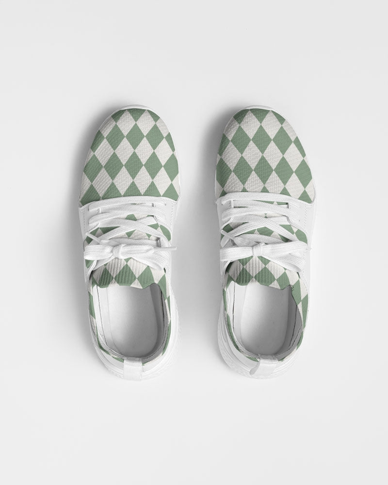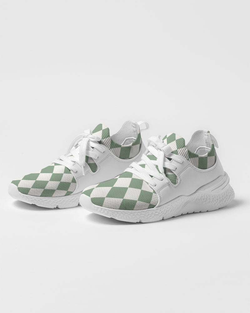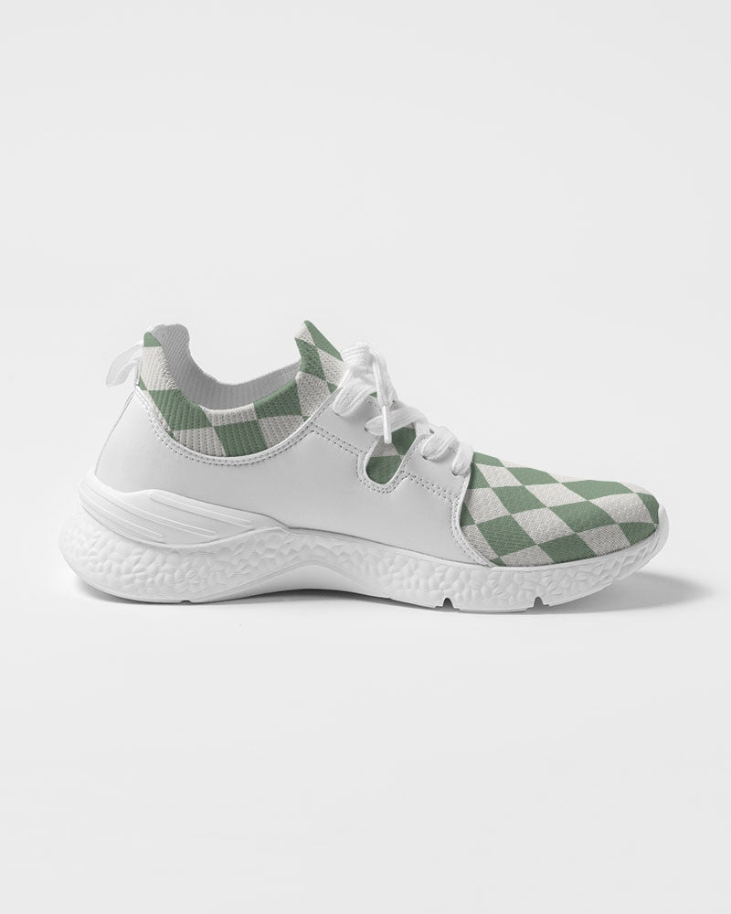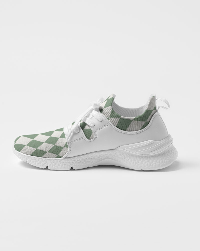 Our Sage Diamond Check Flyknit sneakers are something you won't find every day. They feature a textured breathable upper mesh, and dual side faux leather detailing. The super cool sage green diamond pattern is unique and different. Made with a soft, smooth and resilient foam that is lightweight. These diamond check sneakers are a great addition to your shoe collection. For the equivalent Women's sizing, please refer to the size chart below.