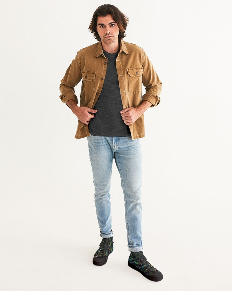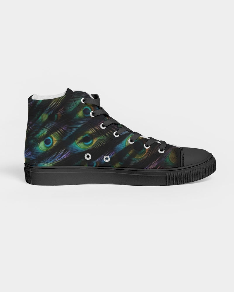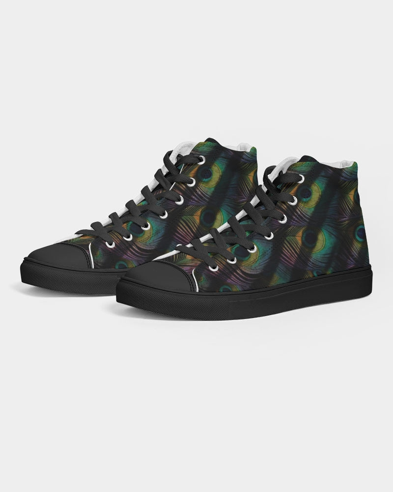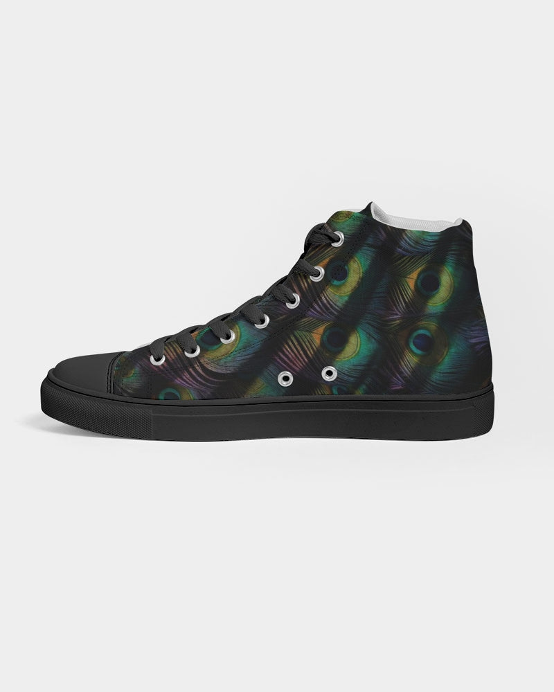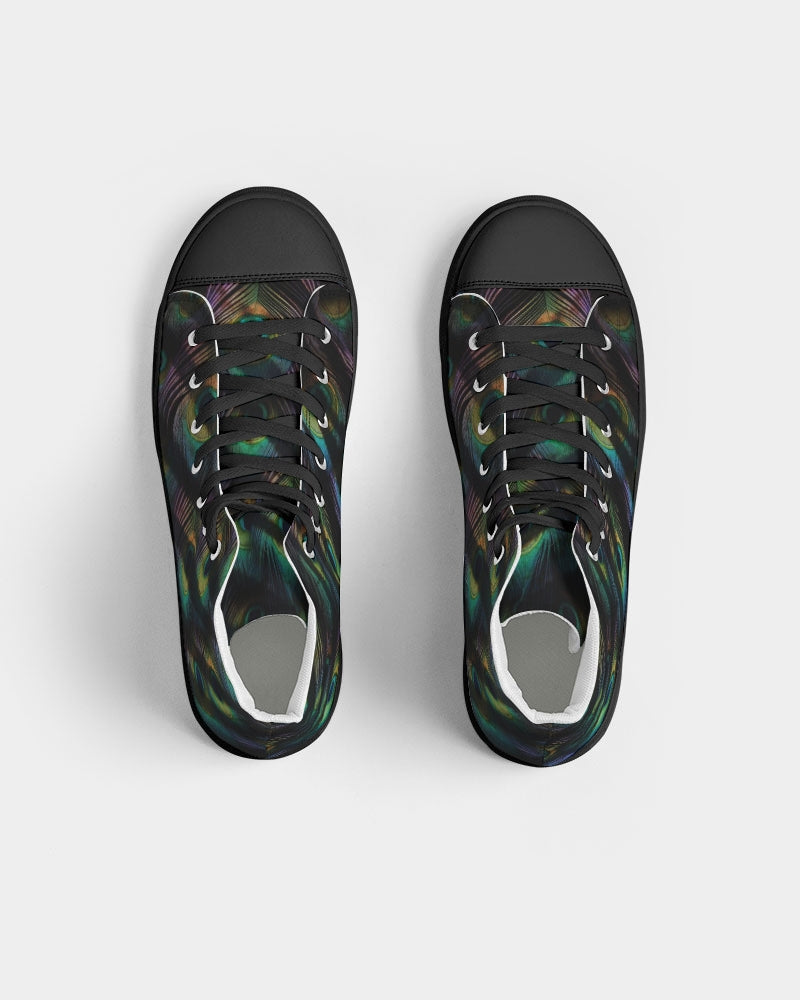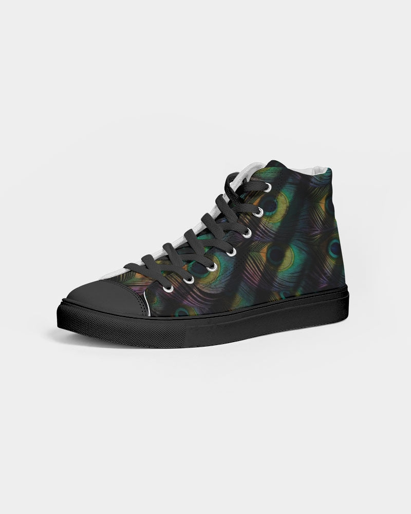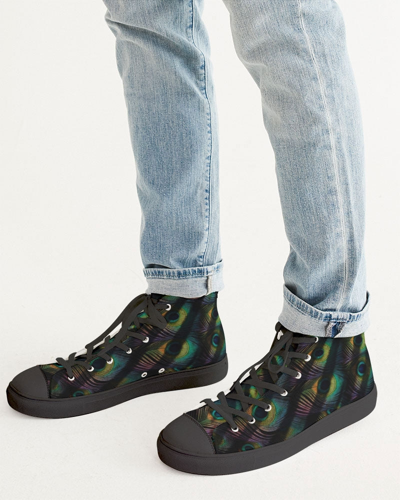 Men's Hightop Canvas Shoe with our exclusive Scorched Peacock print in black.