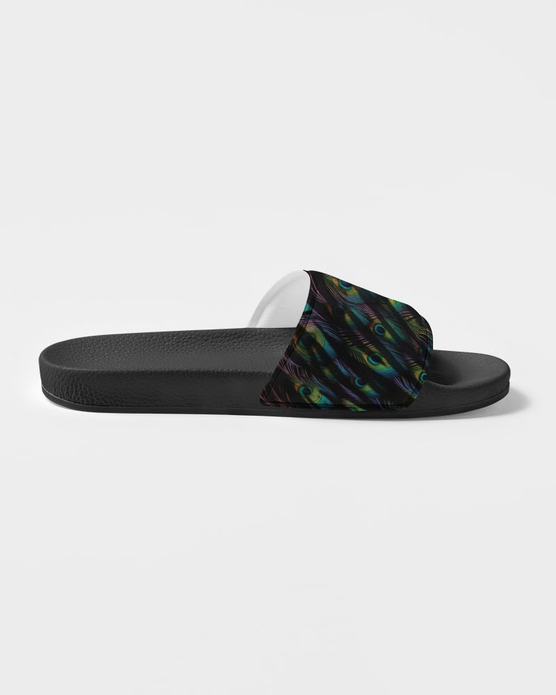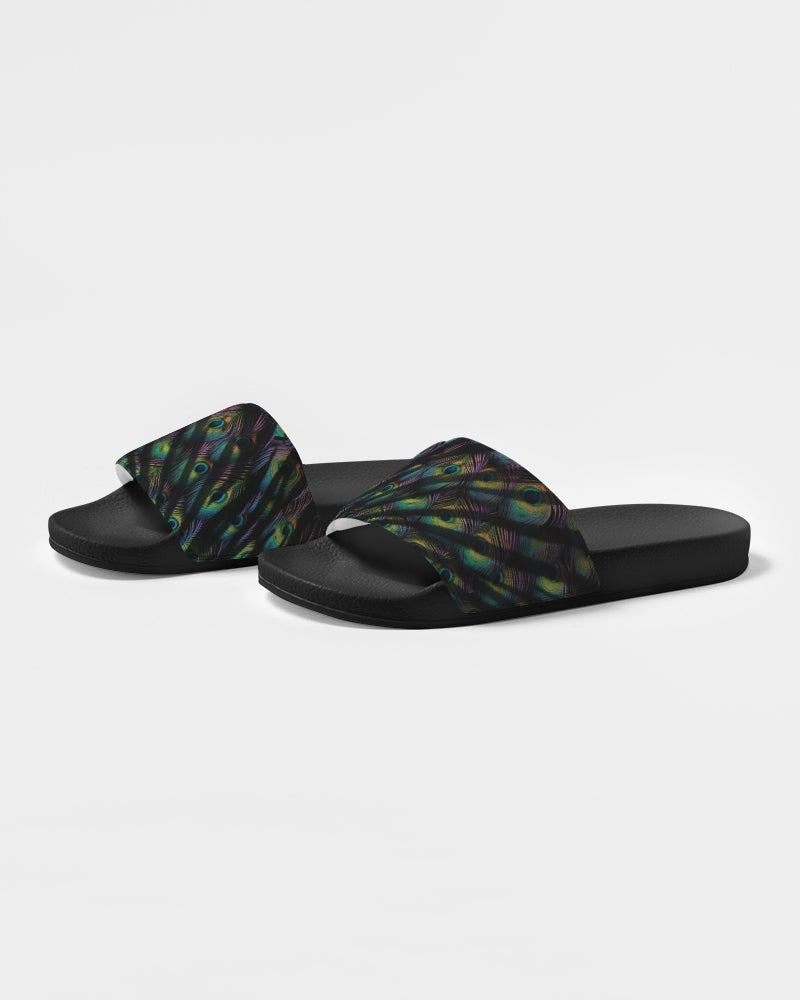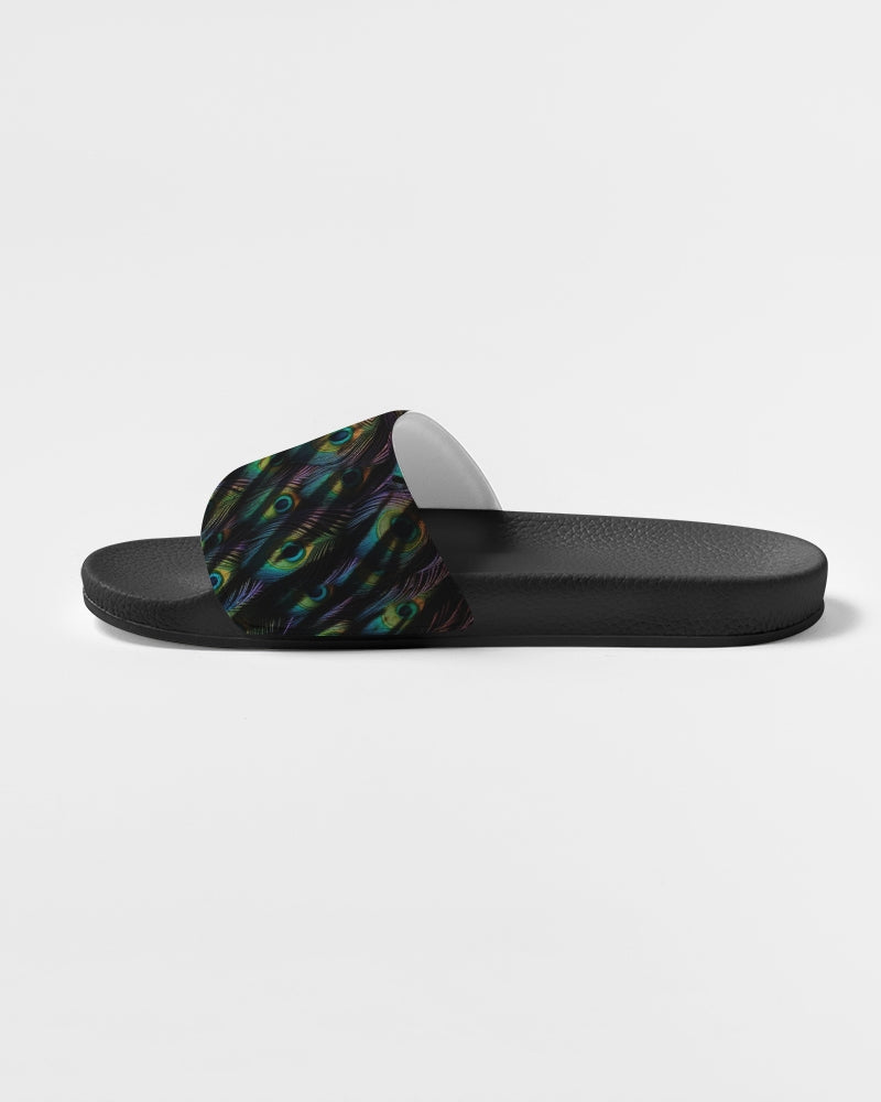 Step into premium comfort and bold style with our Men’s Scorched Peacock Slides. Featuring the striking scorched peacock print on a sleek black faux leather upper, these slides combine artful design with functional performance. Perfect for city streets, casual outings, or lounging in style, they are a must-have for men who want both comfort and statement footwear.