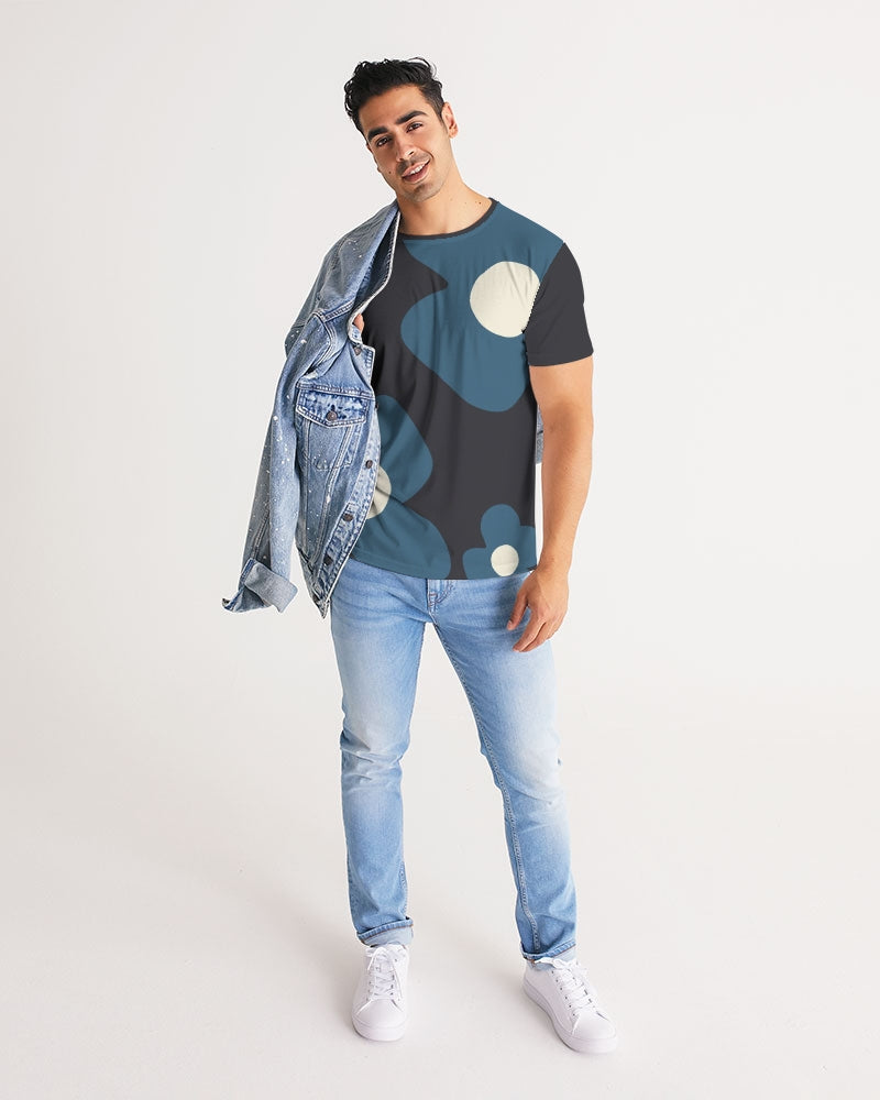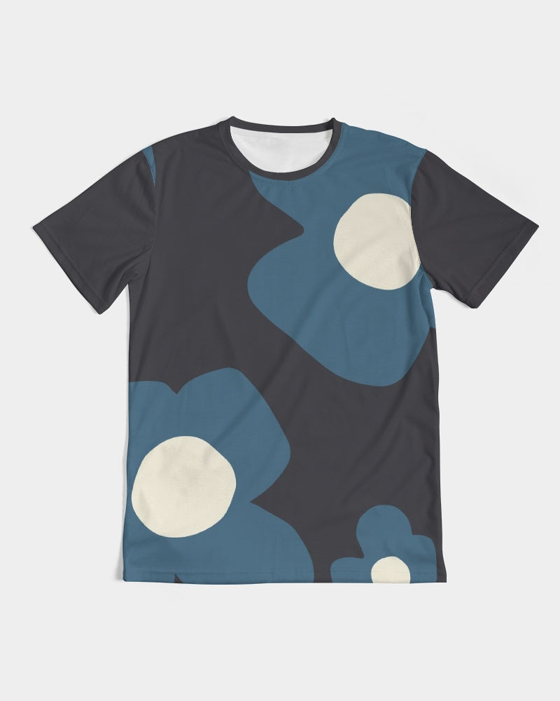 Our Abstract Flowers T Shirt in Charcoal and Blue is unique and stylish. Handmade with premium wear resistant fabric, this abstract flower design will have everyone talking. Dress it up with jeans and a jacket, or down at the beach. Comfortable and stylish, with an all over abstract floral print.