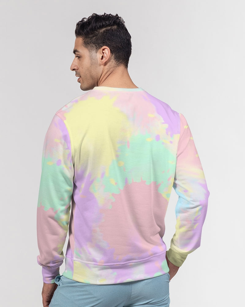 Our Banana Mint Candy Explosion Tie Dye French Terry Crewneck Pullover features a bright all over tie dye print. The regular fit is not too big, but not too tight so you can layer it or wear it alone. Finished with a smooth surface on the outside and loop knitting inside for the right amount of warmth and comfort.
