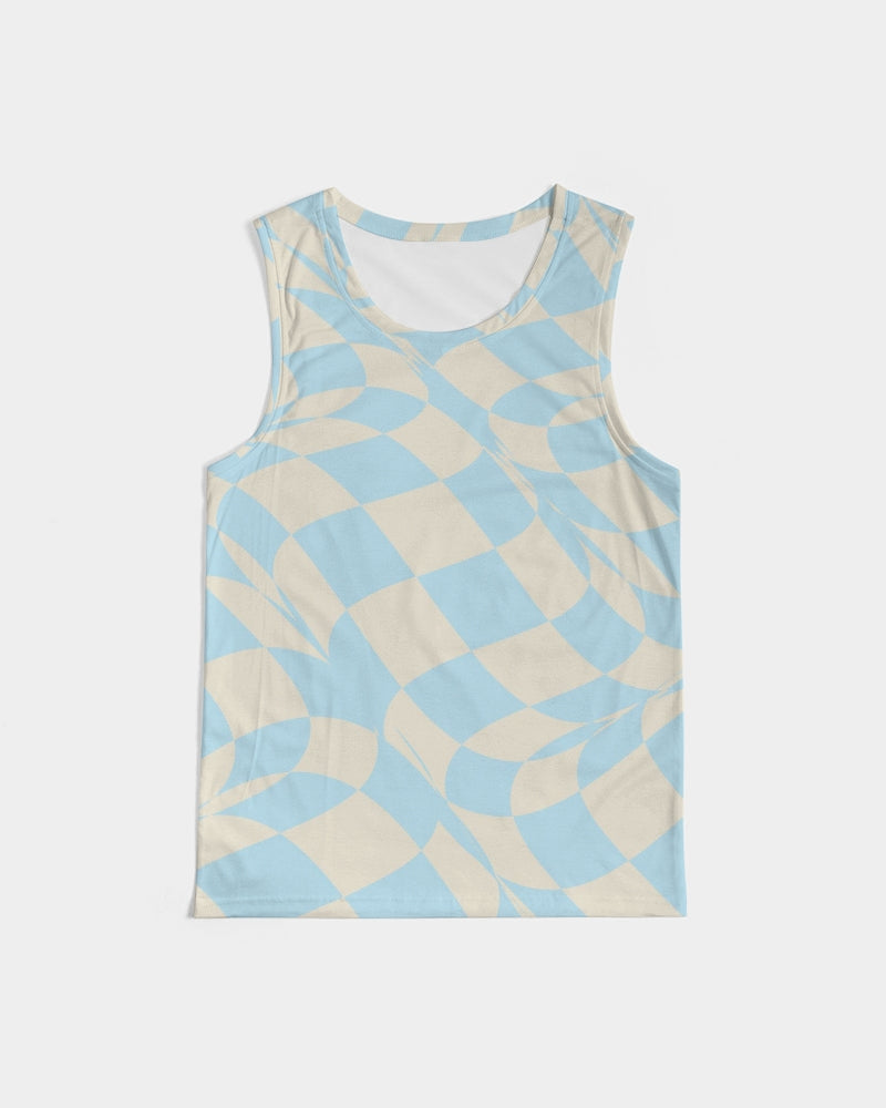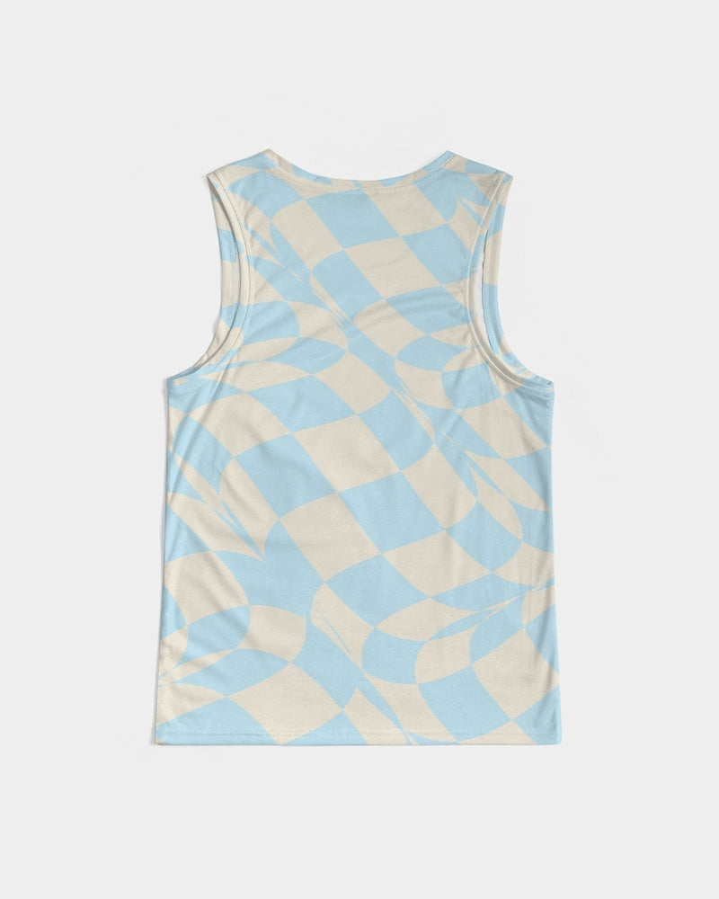 The softest, most comfortable tank you'll ever wear. Our Blue & Vanilla Ripple Check Sport Tank is crafted from a soft and stretchy polyblend material. It has a rib-knit trim and U-neck for a style that never fades. Wear it alone, or under a jacket for a color pop.