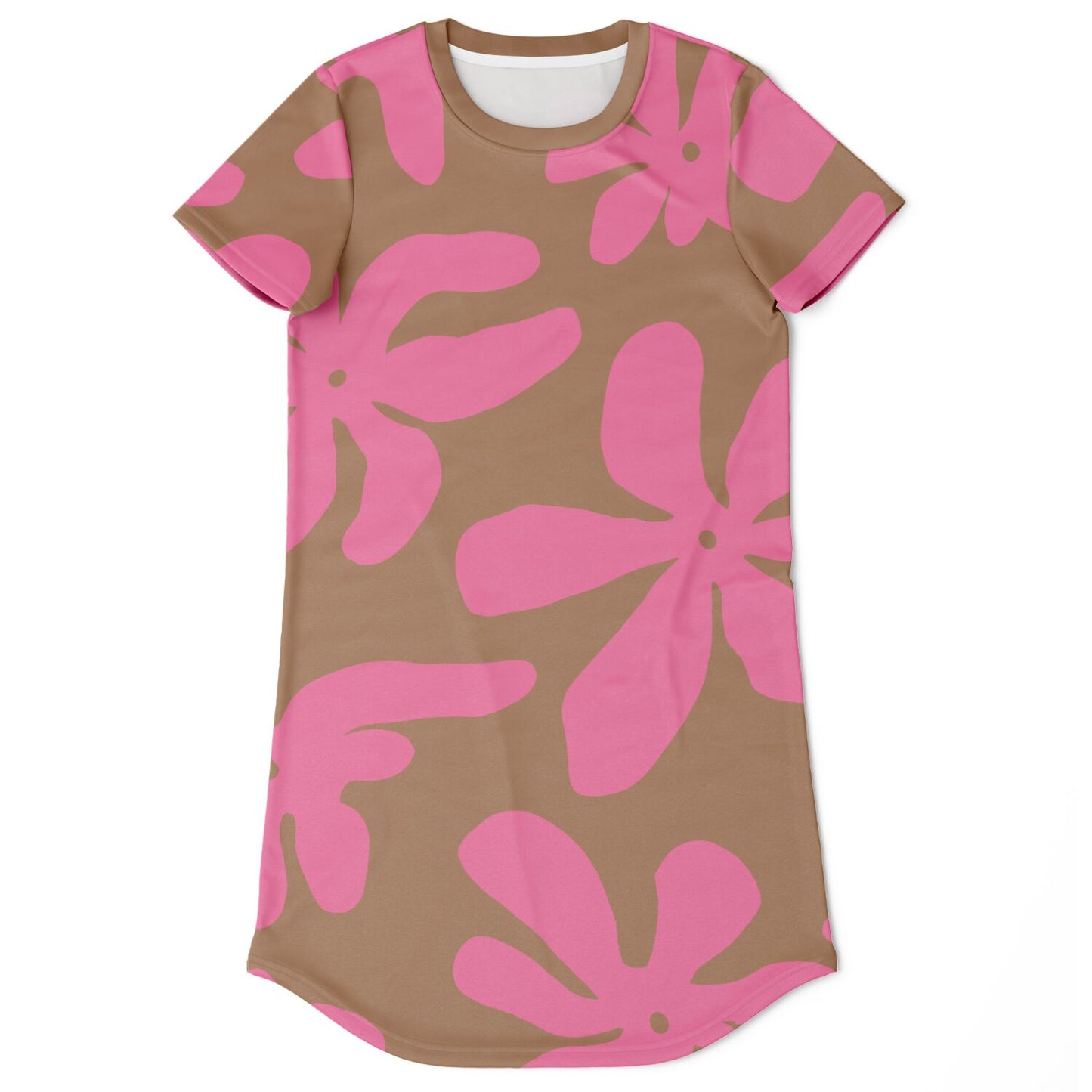 Our Deep Pink Abstract Flowers T-Shirt Dress is made from high quality fabric that will last the seasons. This soft and relaxed-fitting T shirt dress is a versatile piece - wear it by itself in Summer, or layered over pants or leggings in the cooler months. This unique and bold abstract flower print will make you stand out from the crowd.