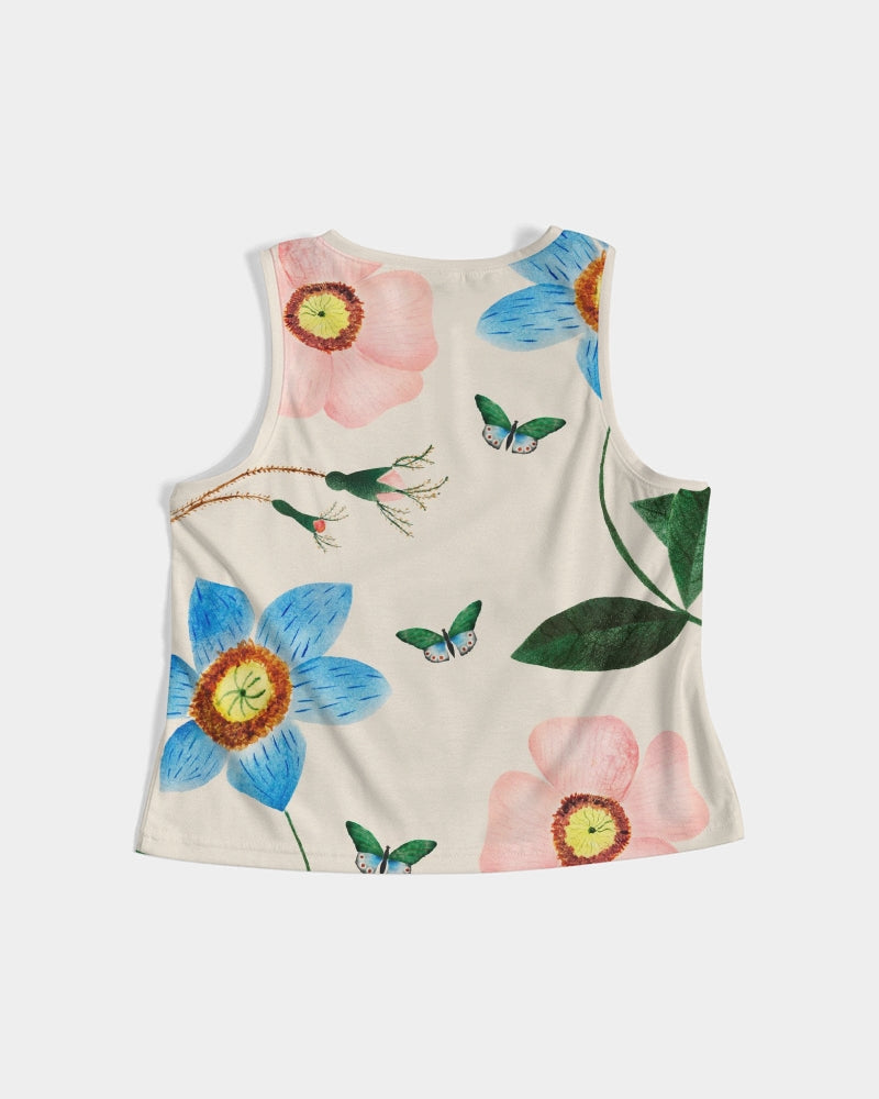 Our Ivory Garden Cropped Tank features delicate flowers and graceful butterflies to add a touch of nature to your summer styling. Embrace the beauty of the season with this must-have piece.