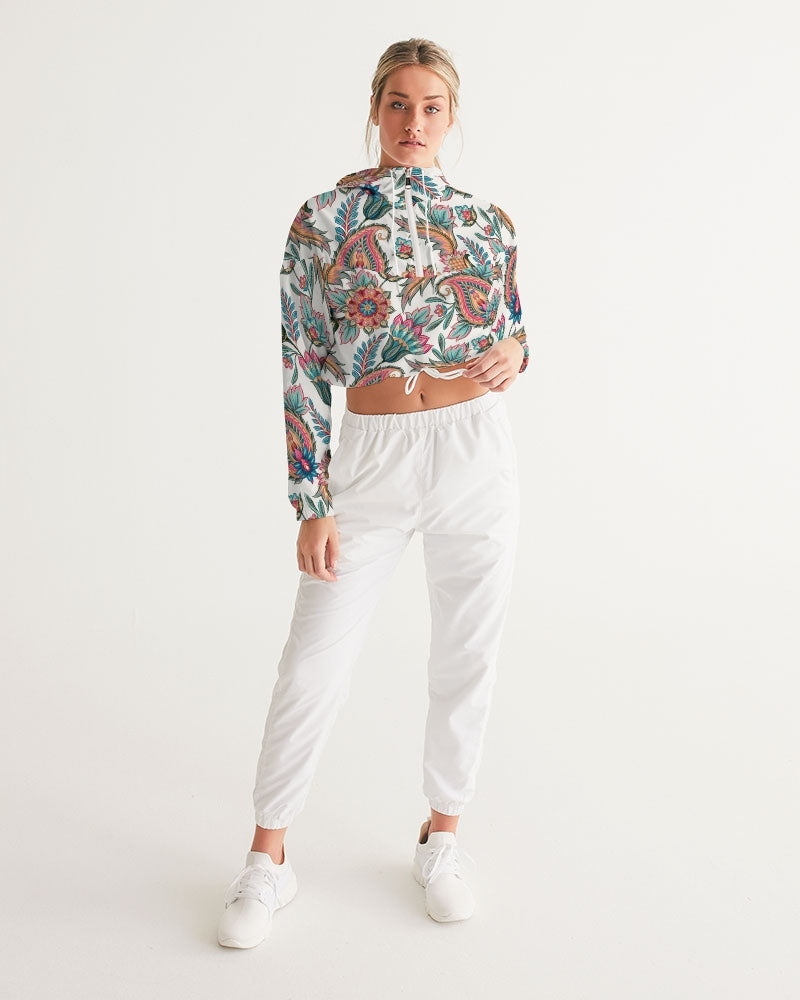Our Pure Paisley Women's Cropped Windbreaker is a great design. Featuring a lightweight, water-resistant fabric it has flexible styling options. Wear as a pre gym outfit for a bit of coverage in the cold, or an accessory for lunch with the girls. Hooded and lined it provides a bit of warmth when required. This all over print paisley windbreaker jacket is bound to be noticed.