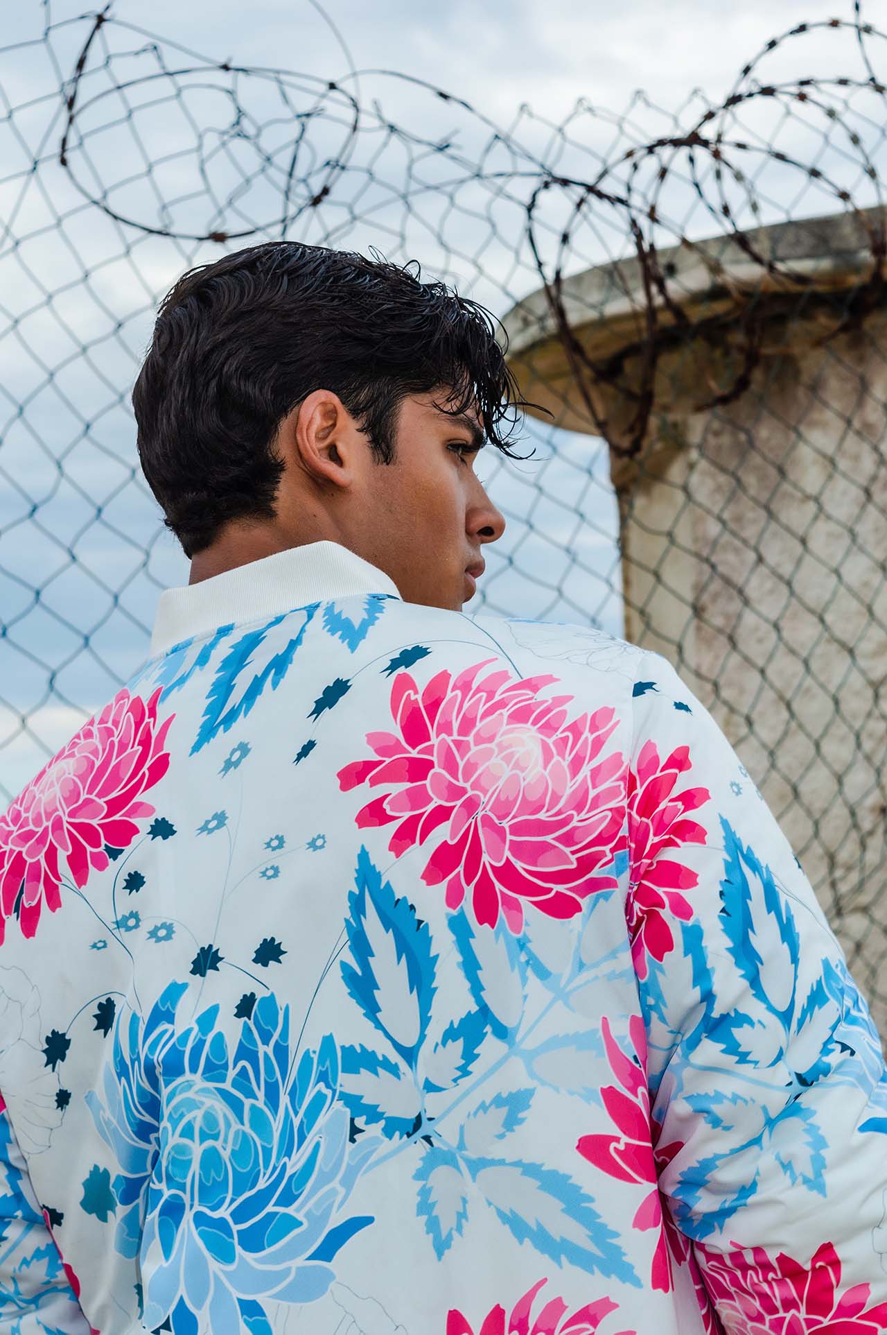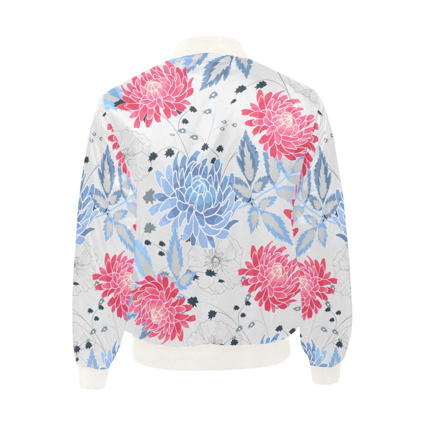 Our Sublime Floral Quilted Bomber Jacket is a great addition to your wardrobe. It features a stunning floral print in reds, blue and gray over a sleek off-white.