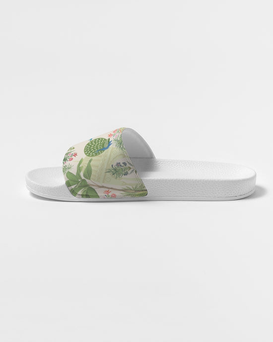 Slip on these tropical and botanical-inspired slides for a touch of nature in every step. Our Indian Garden print features ferns, palms, flowers, peacocks, plants and a rotunda. These Men's Slides are perfect for long sunny days in style and comfort!