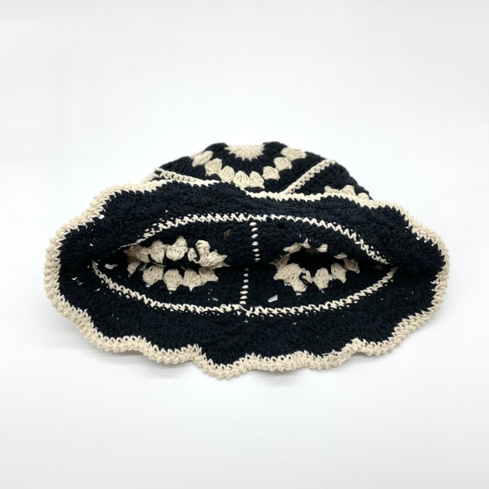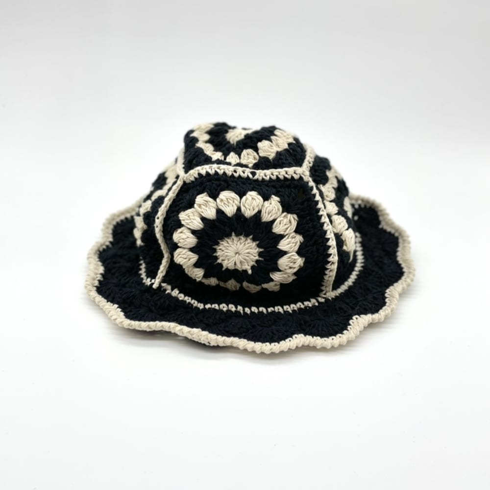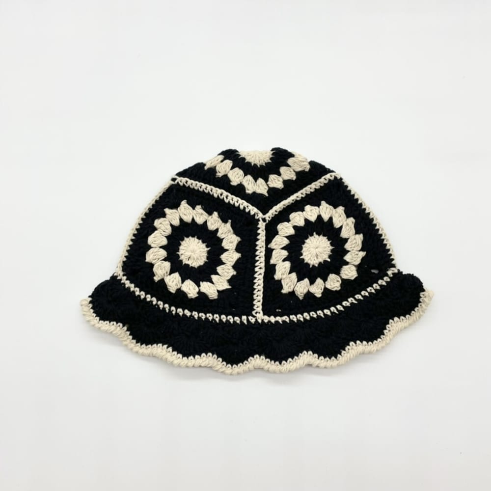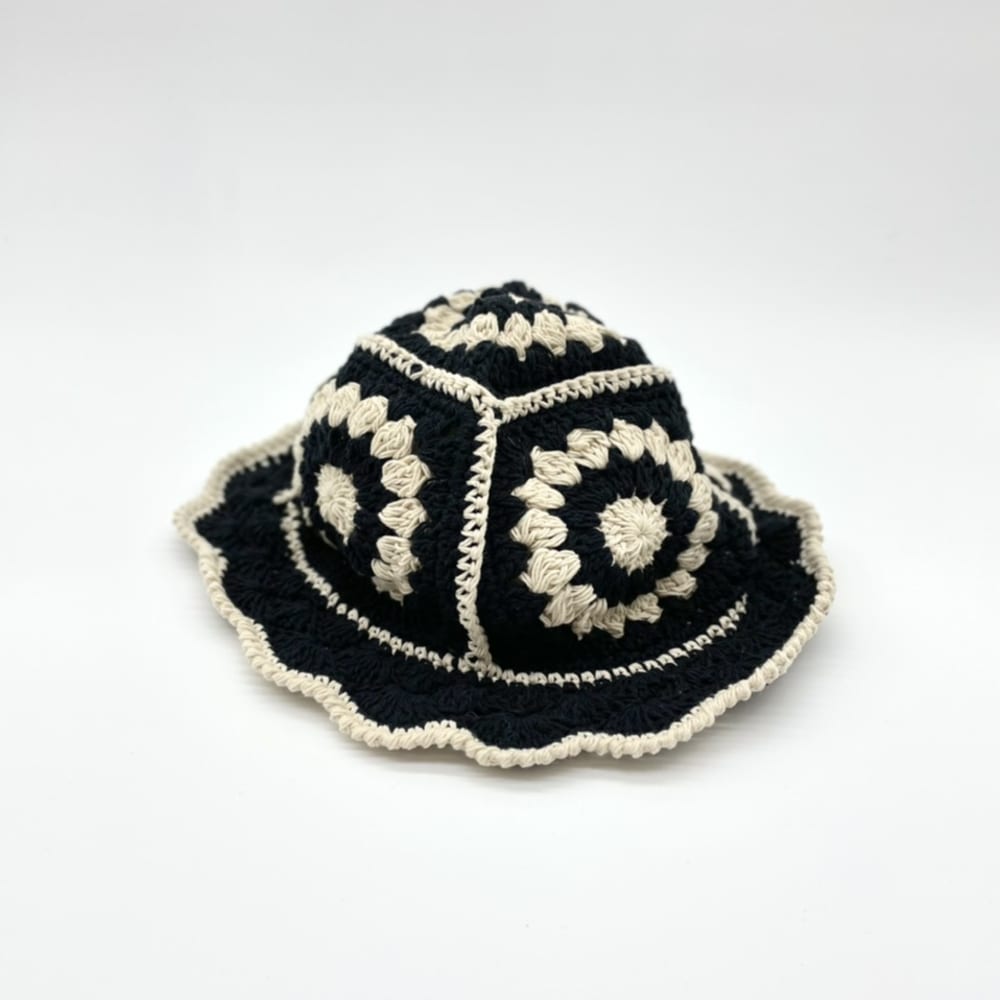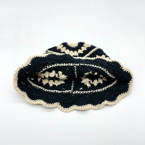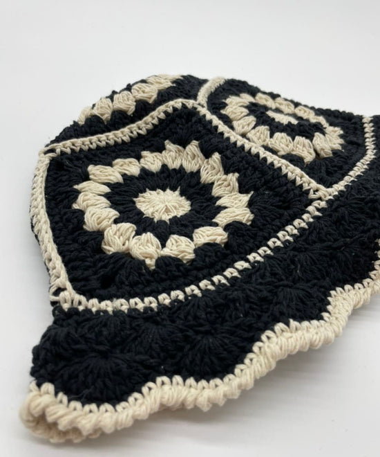 With a handmade look, this vintage style Crochet Bucket hat in Black & Cream is perfect for the cooler months. The flat top and narrow brim provides a bit of coverage, while the flower pattern adds a unique look.