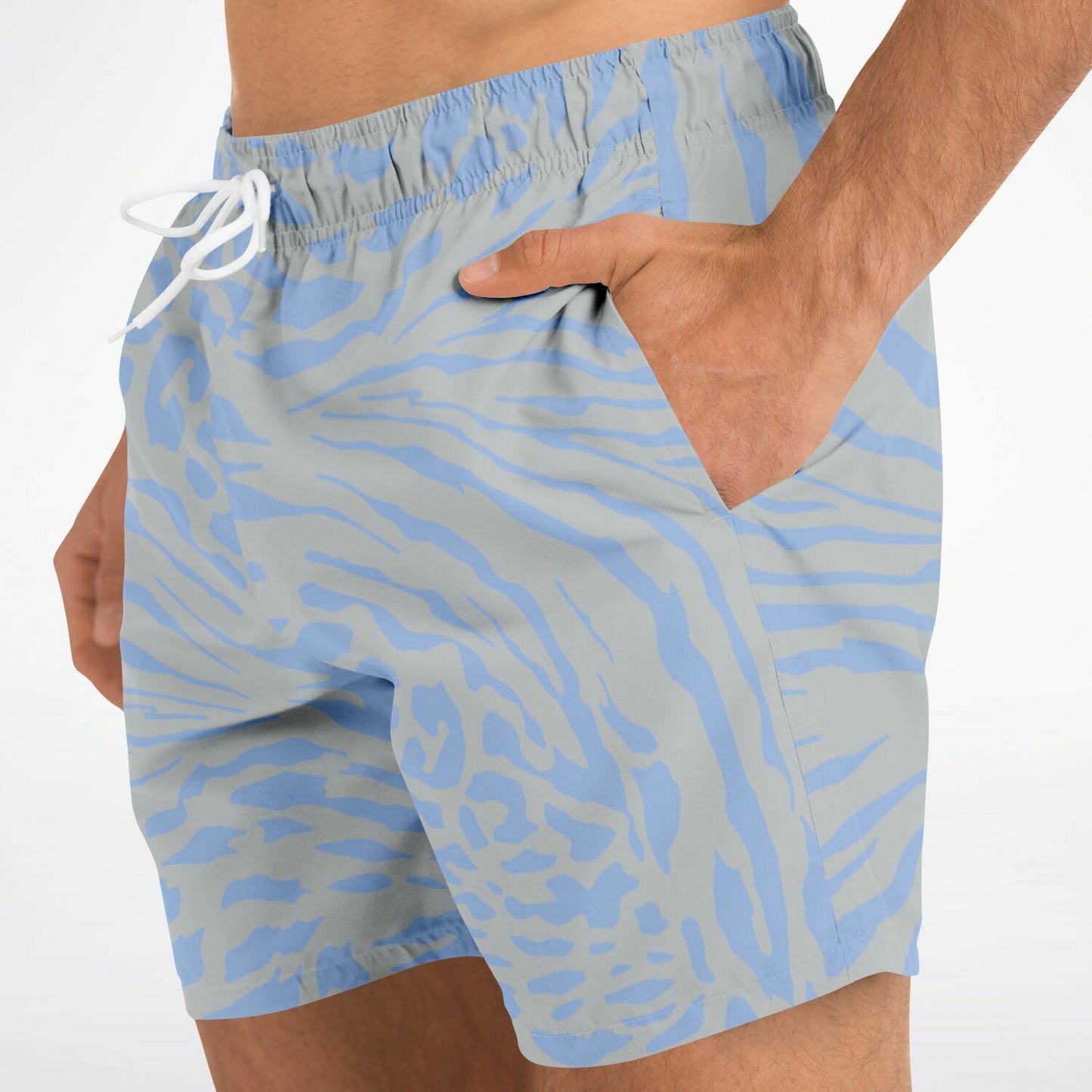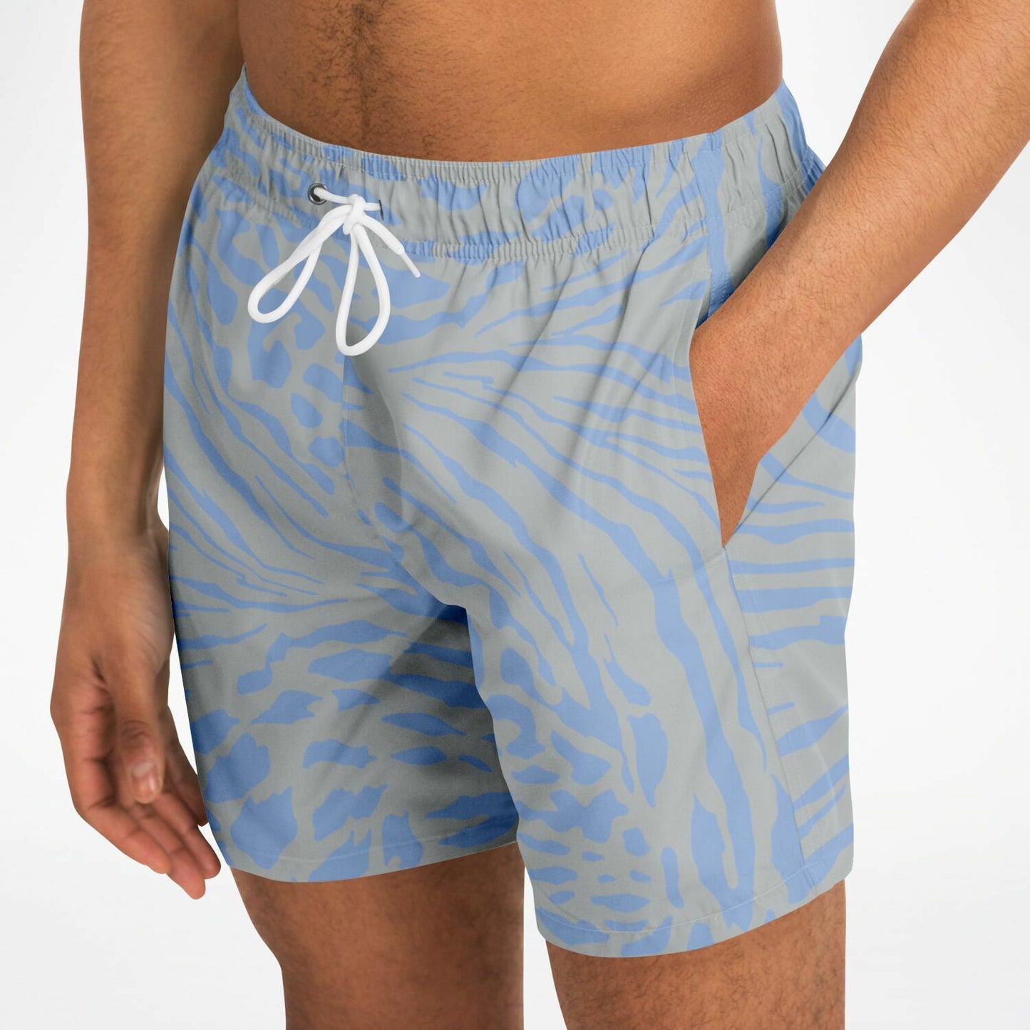 Bring a touch of the wild to the water with the Blue Slate Safari Swim Trunks. Featuring a unique blend of animal-inspired stripes and spots in slate grey and light blue, these mid-length swim trunks are made from quick-dry fabric for all-day comfort. Designed with mesh-lined pockets, internal basket lining, and an adjustable drawstring waist, they’re perfect for the beach, pool, or weekend lounging.