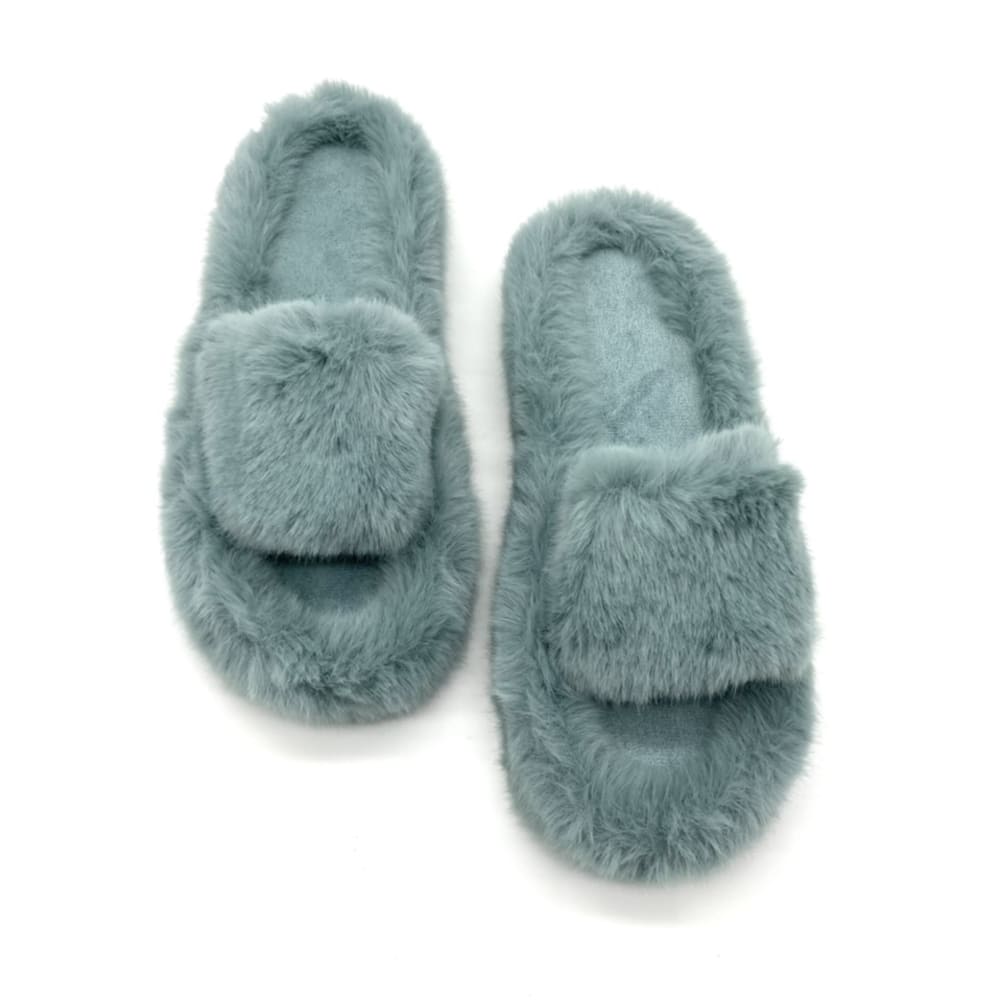 These super cute, super soft fluffy slippers in gorgeous Sea Blue will be your daily favorites. Comfortable and hard-wearing with a thick sole. They have a comfortable open toe and wide strap for easy on and off.