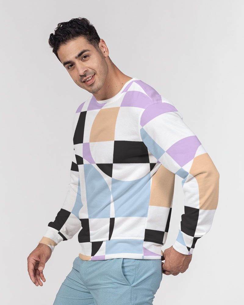 Lilac Multi Checkerboard Men's French Terry Pullover Sweatshirt