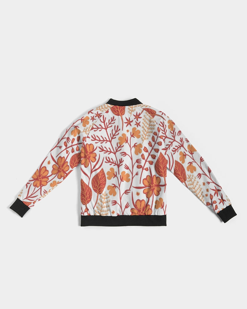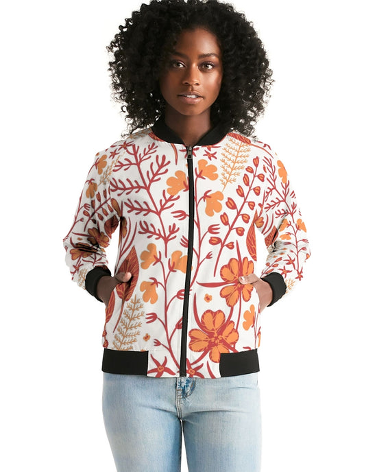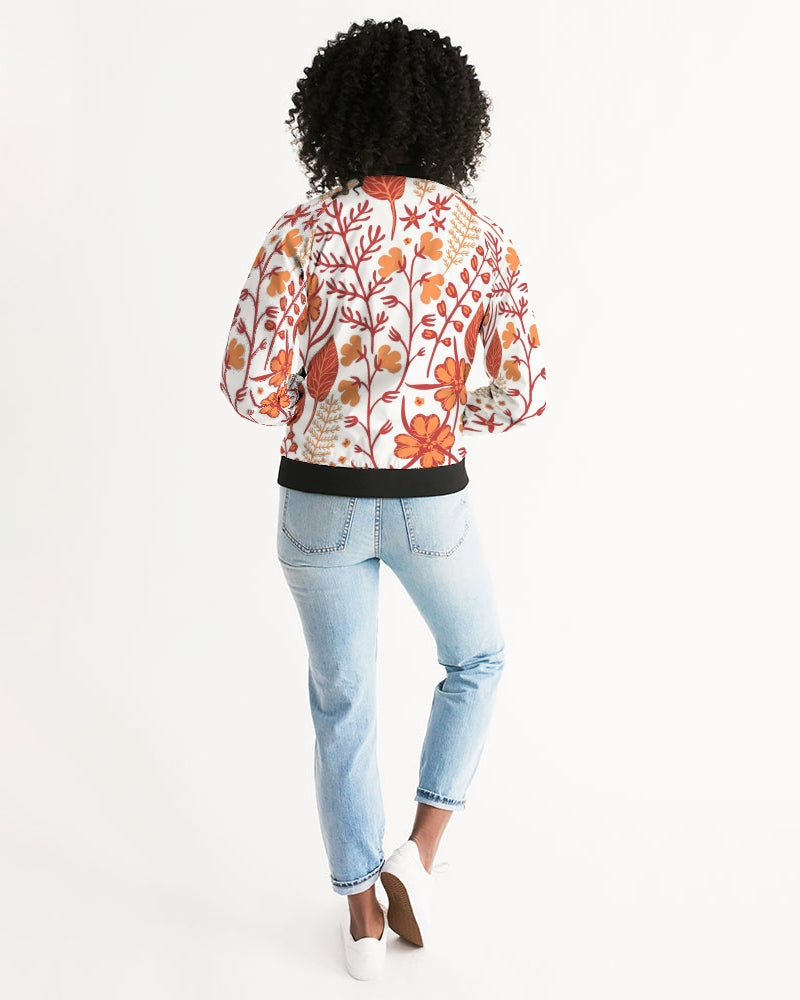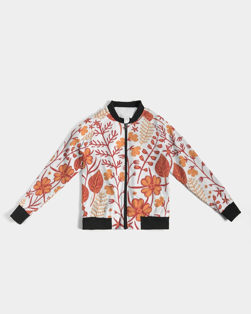 Our Orange Retro Garden design features an all over 70s retro orange floral print. This lightweight Women's Bomber Jacket has an airy fabric that is lined with the perfect amount of insulation. Great for all year round styling over a tee or top to lift your outfit.