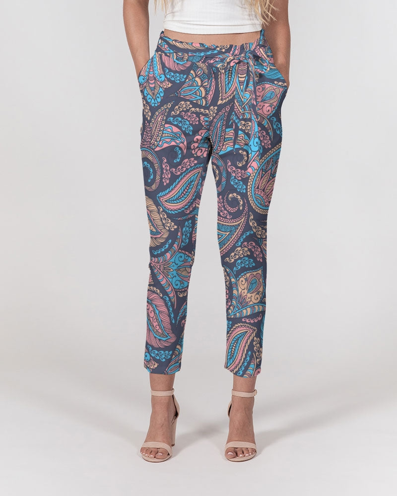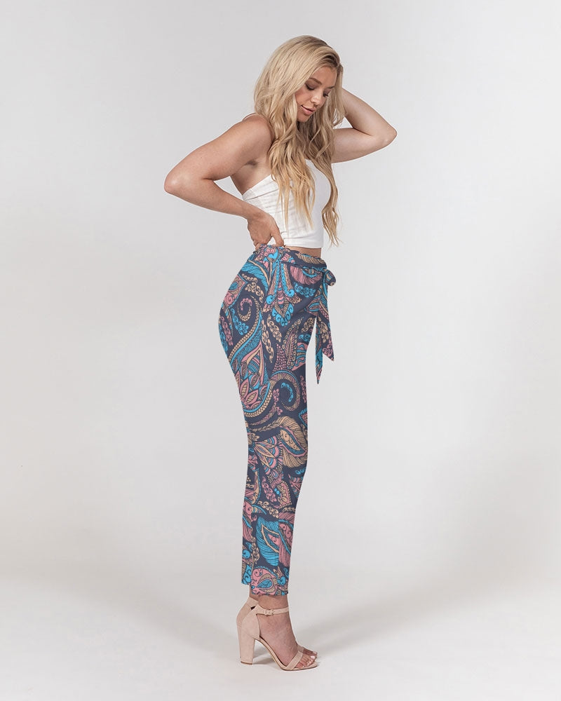 Our Perfect Paisley Women’s Belted Tapered Pants are designed to sculpt your figure in all the right places. Comfortable and stylish. Made from smooth chiffon with moderate stretch and finished with a high-rise waist and tapered cut. A beautiful paisley design in a range of pinks and blue.
